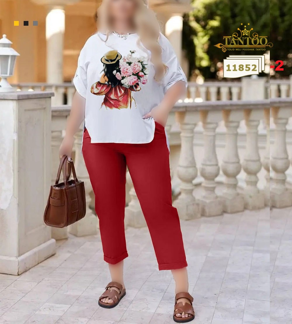 ست بلوز شلوار مجلسی بیرون پوش سایزبزرگ