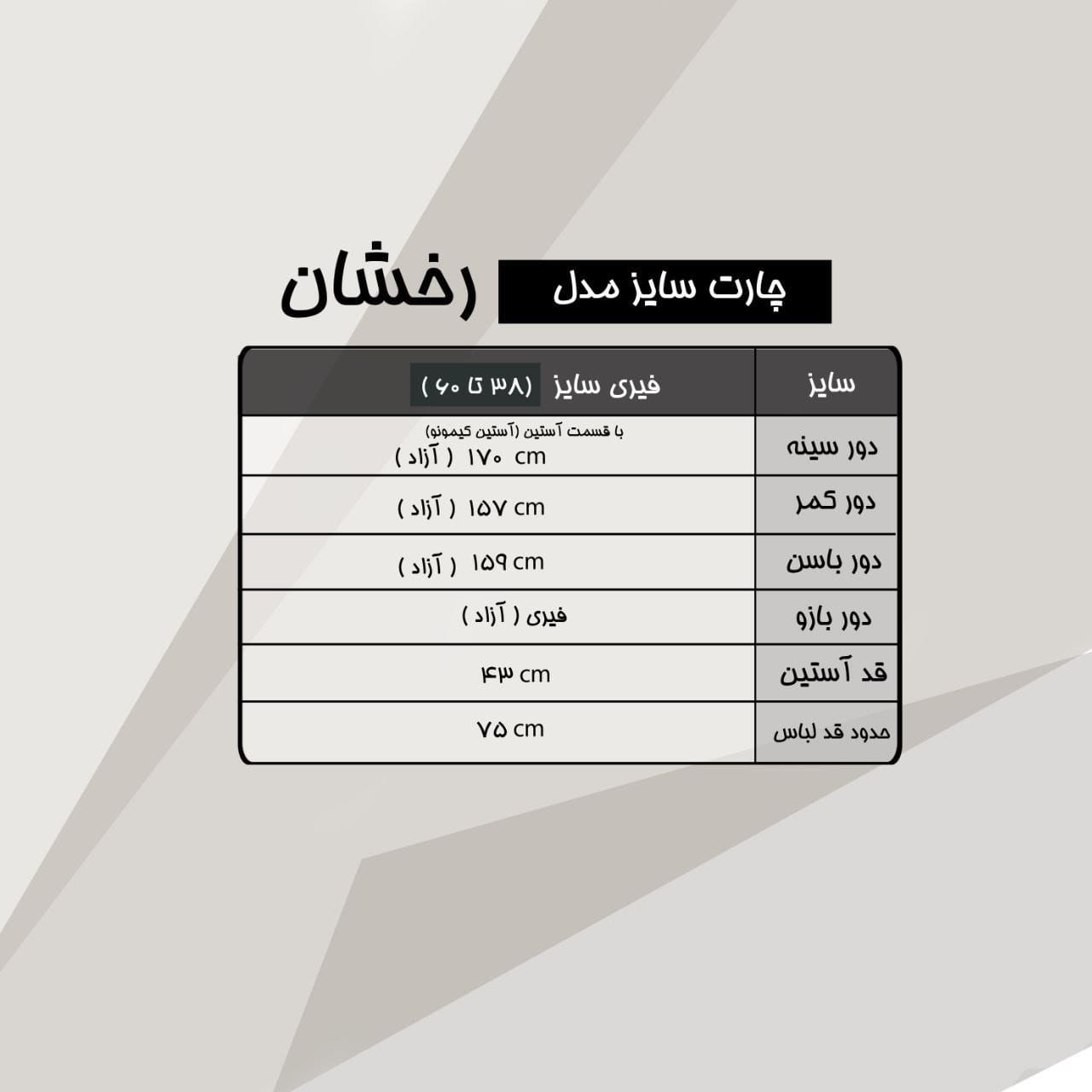 سایز ها : فیری سایز 38 تا 60