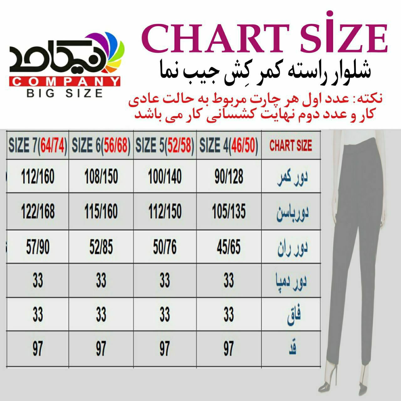 ⬅️ دور کمر 112 الی 160 دور باسن 122 الی 168 دور ران 57 الی 90