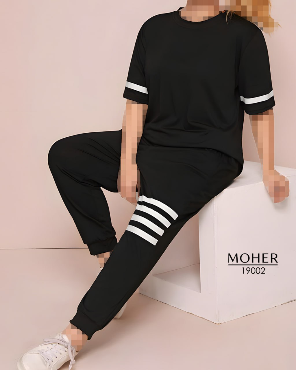 رنگ مشکی شیک با جزئیات راهراه سفید، یه استایل ساده اما اسپرت و جذاب میسازه که هیچوقت از مد نمیفته.