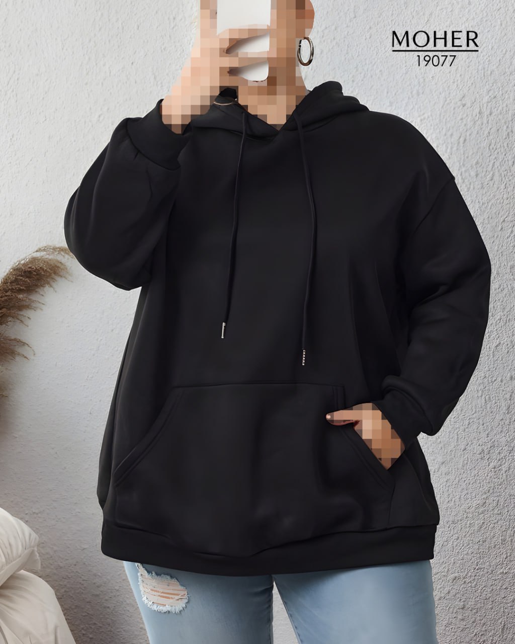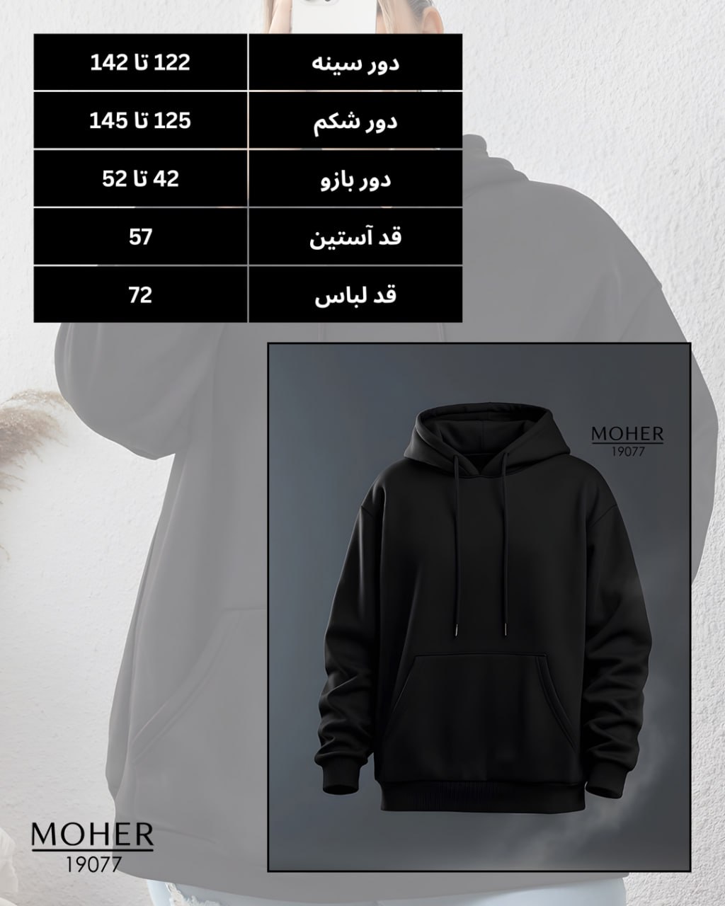 این هودی کرک‌دار سایز بزرگ مشکی یک انتخاب فوق‌العاده برای روزهای سرد پاییز و زمستانه. این مدل با پارچه‌ی گرم و لطیف کرک‌دار دوخته شده و در عین سبکی، گرمای خیلی خوبی به بدن می‌ده. طراحی ساده و مینیمال در رنگ مشکی این هودی باعث شده به‌راحتی با هر استایلی ست بشه؛ از استایل روزمره و اسپرت گرفته تا استفاده داخل خونه یا جمع‌های دوستانه.