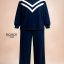 طرح V سفید روی بلوز، باعث میشه بالاتنه کشیدهتر و استایل خوشفرمتر دیده بشه. آستینهای آزاد و شلوار خوشدوختش هم باعث میشن کل روز احساس سبکی و راحتی داشته باشی.