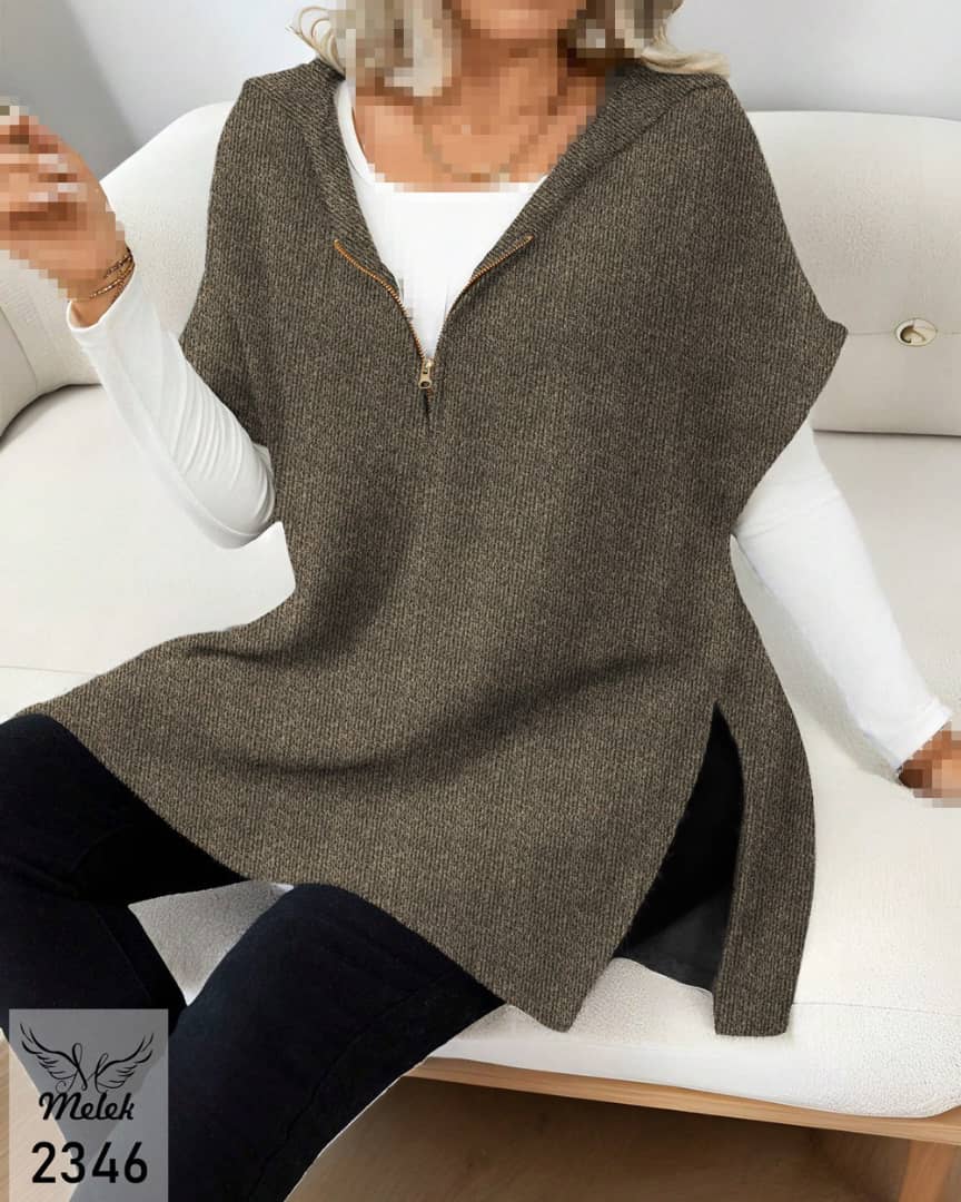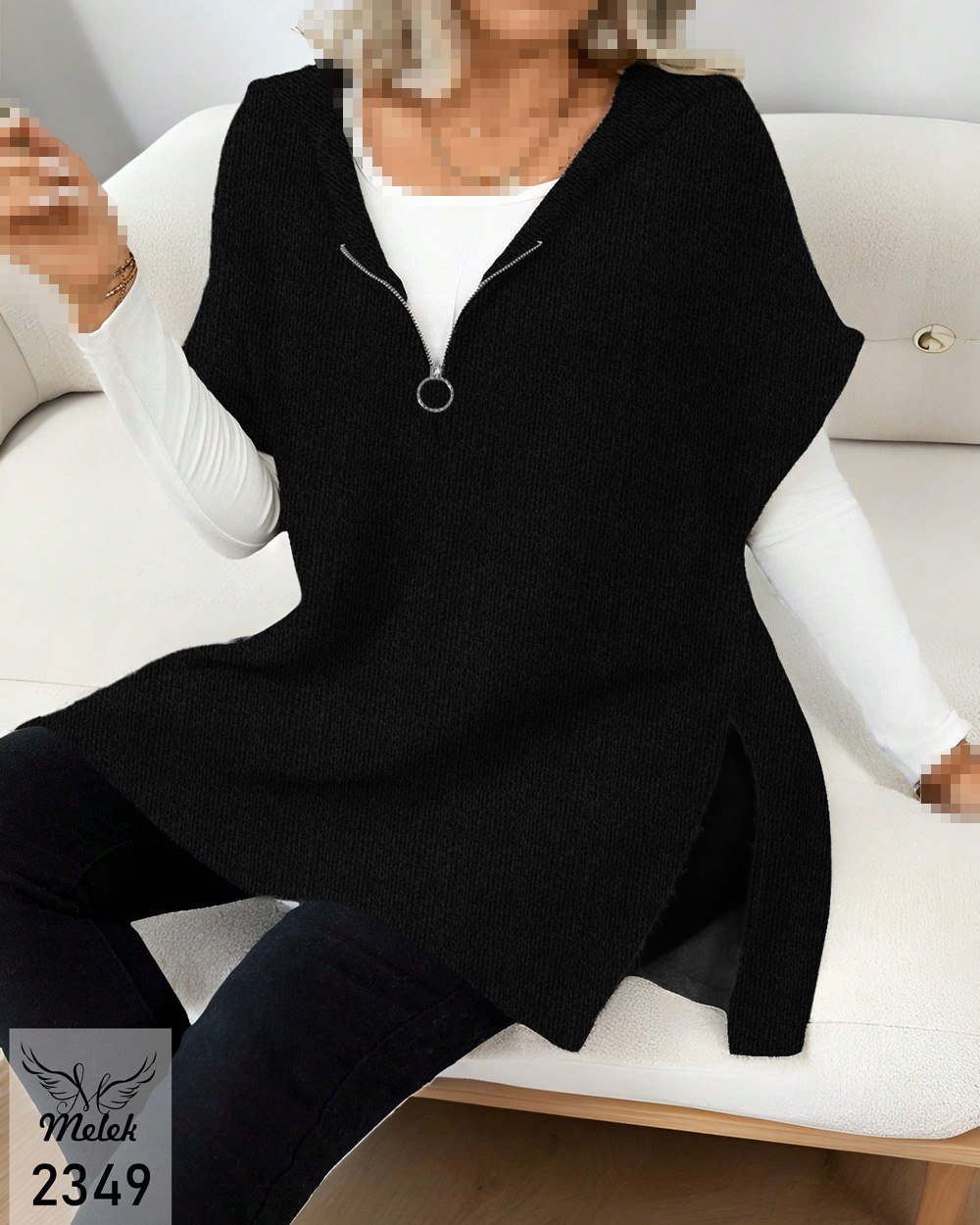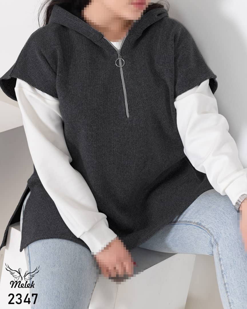 🔸 سوشرت اسپورت مجلسی یقه زیپ کلاهدار بدون آستین