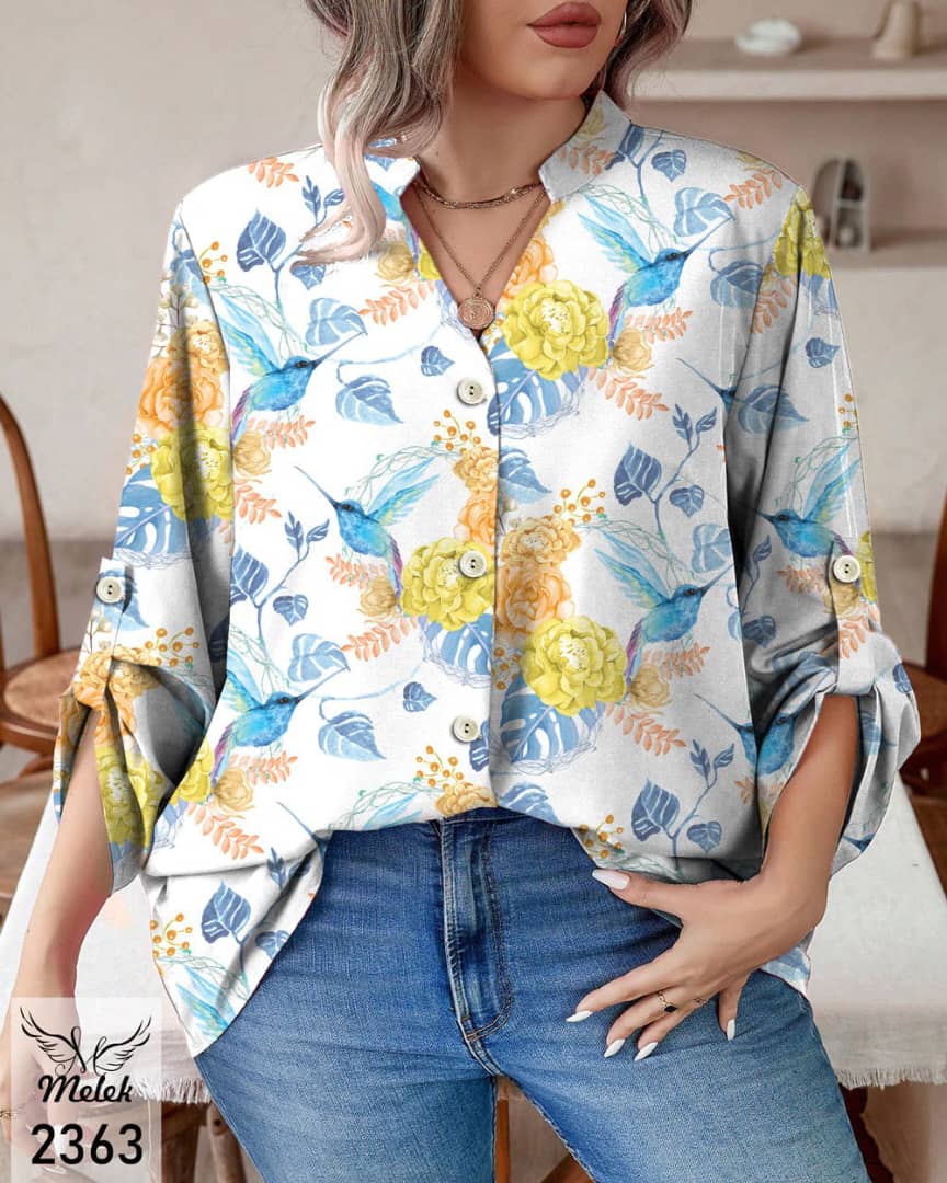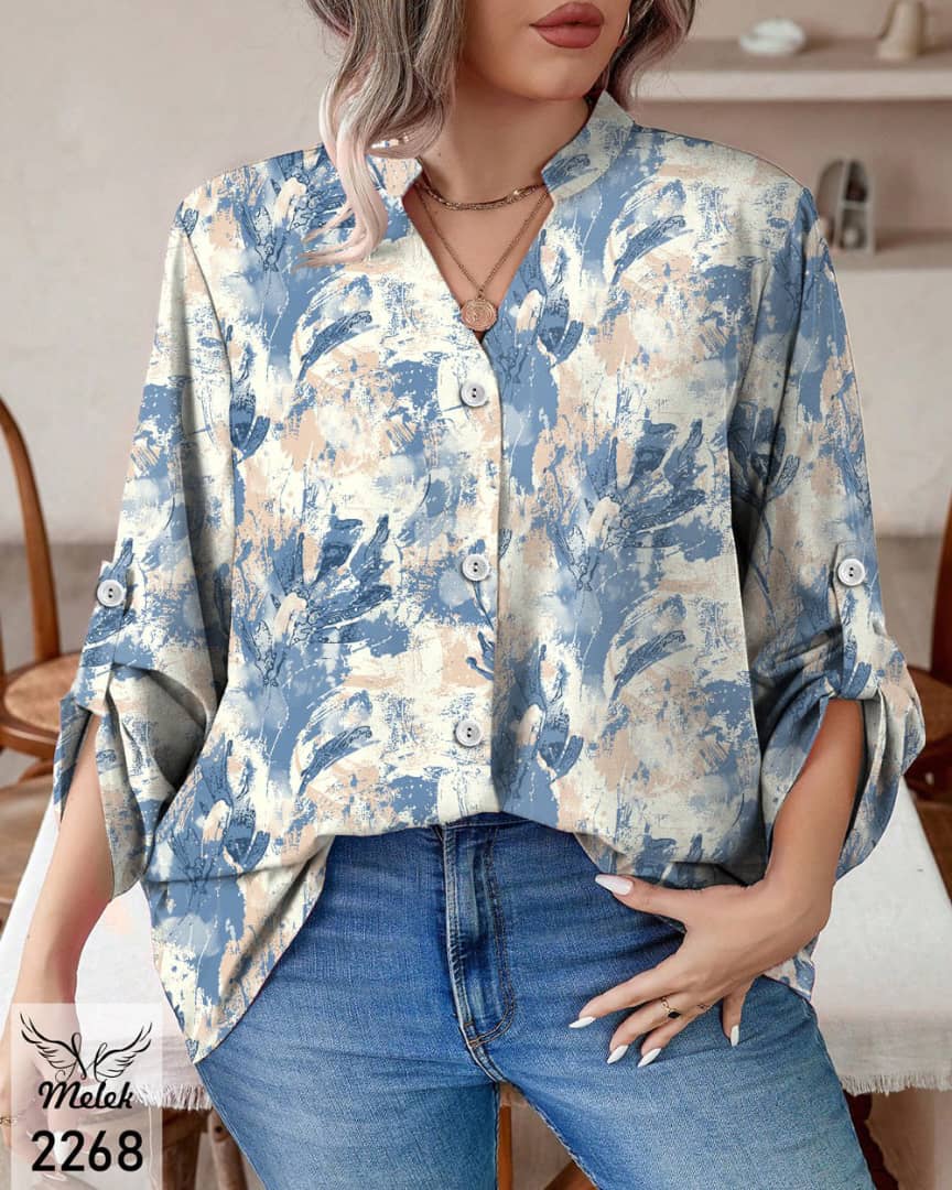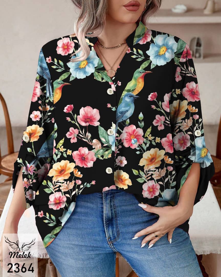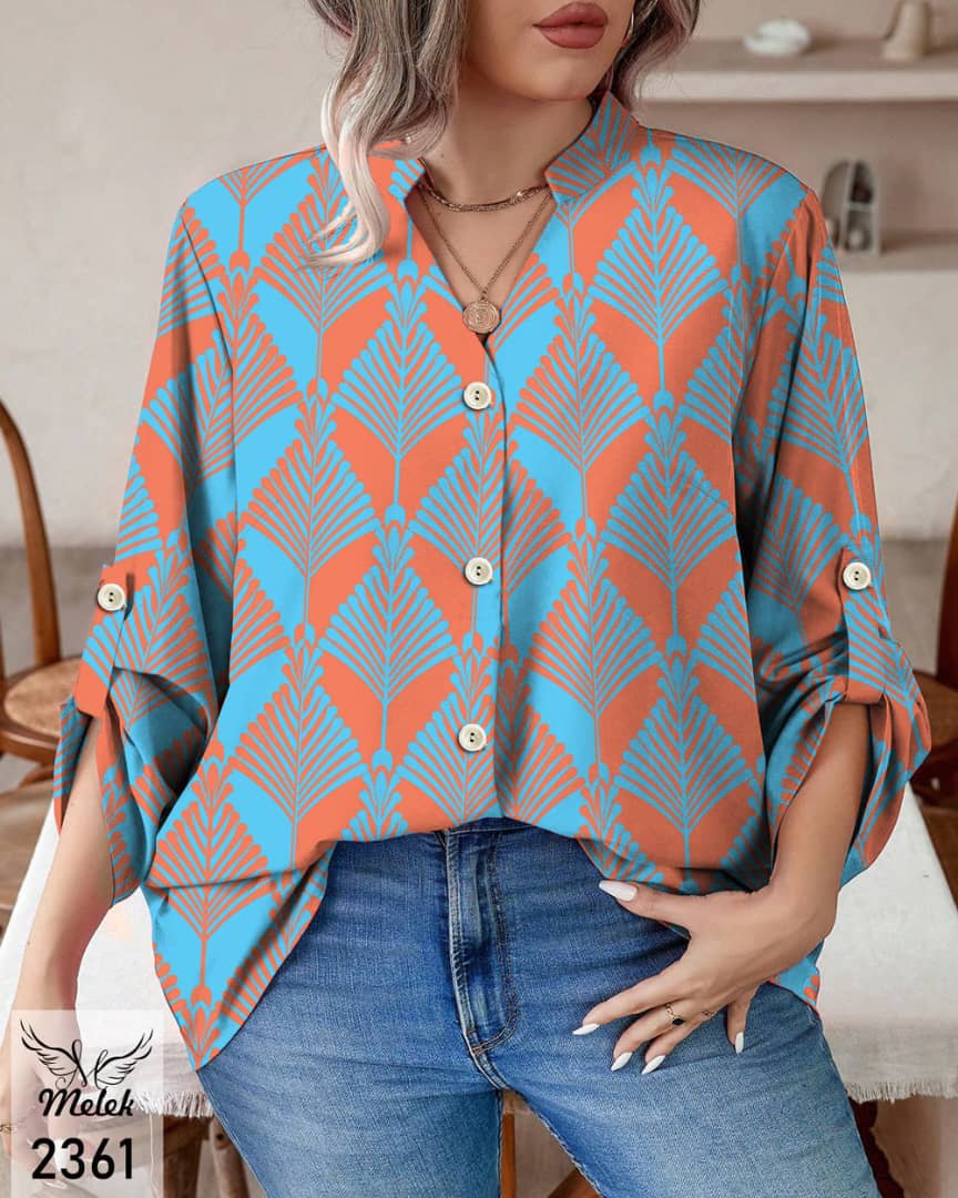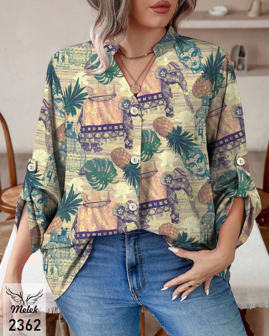 🔸 شومیز خاص مجلسی یقه هفت جلو دکمه بازشو آستین پاگن دار