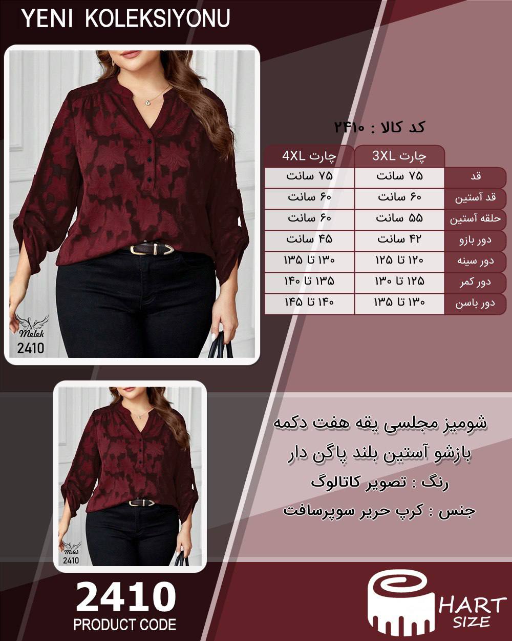 🔸 شومیز مجلسی یقه هفت دکمه بازشو آستین بلند پاگن دار