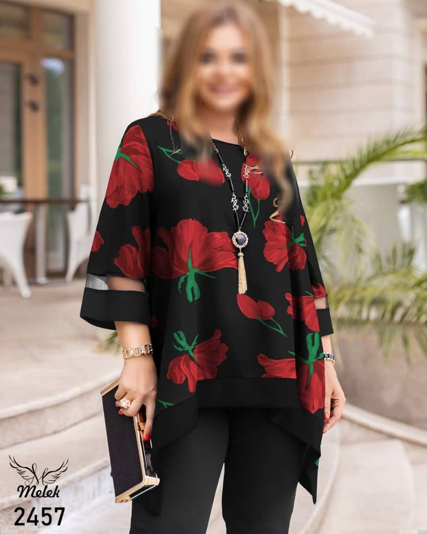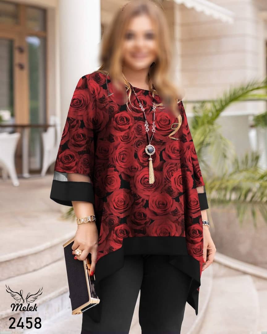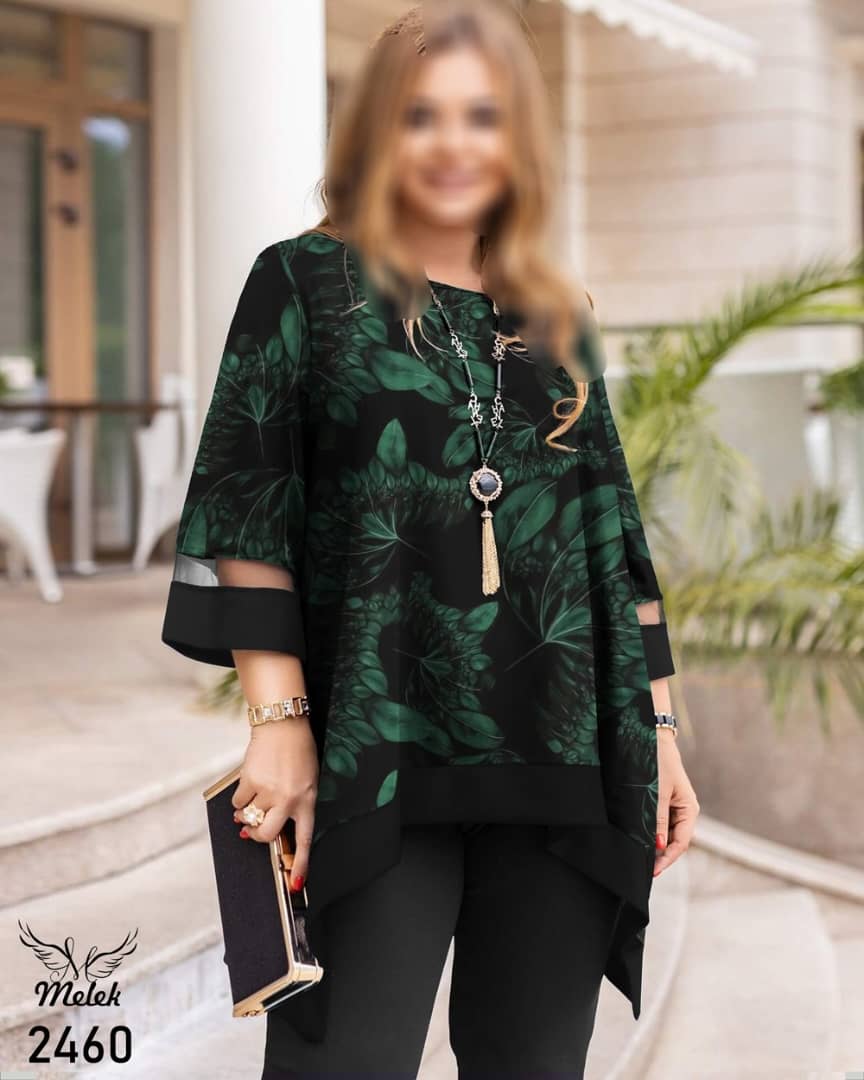 🔸 تونیک مجلسی کاربردی یقه گرد آستین سه ربع دامن هلالی