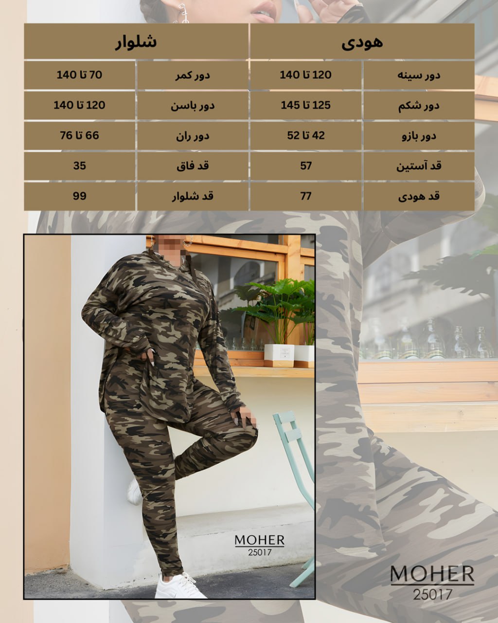 ست هودی و شلوار زنانه سایز بزرگ طرح ارتشی، انتخابی جذاب و مدرن برای خانمهاییست که عاشق استایل اسپرت و راحت هستن. طرح ارتشی کلاسیکش در کنار دوخت تمیز و پارچه لاکرا سافت باعث میشه هم خوشپوش به نظر بیای و هم حس راحتی بینظیری داشته باشی.