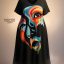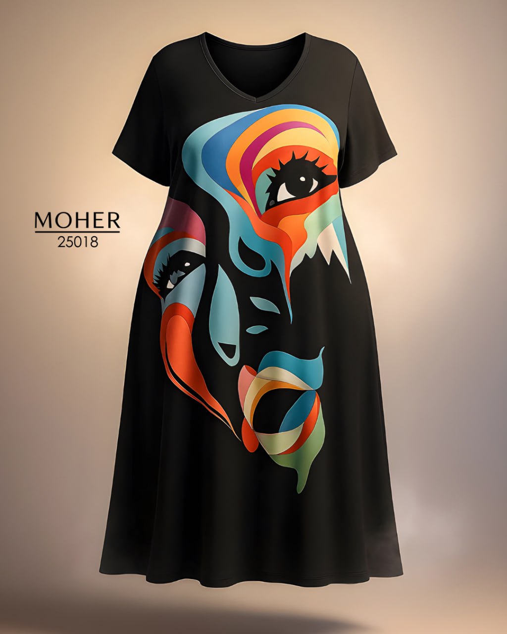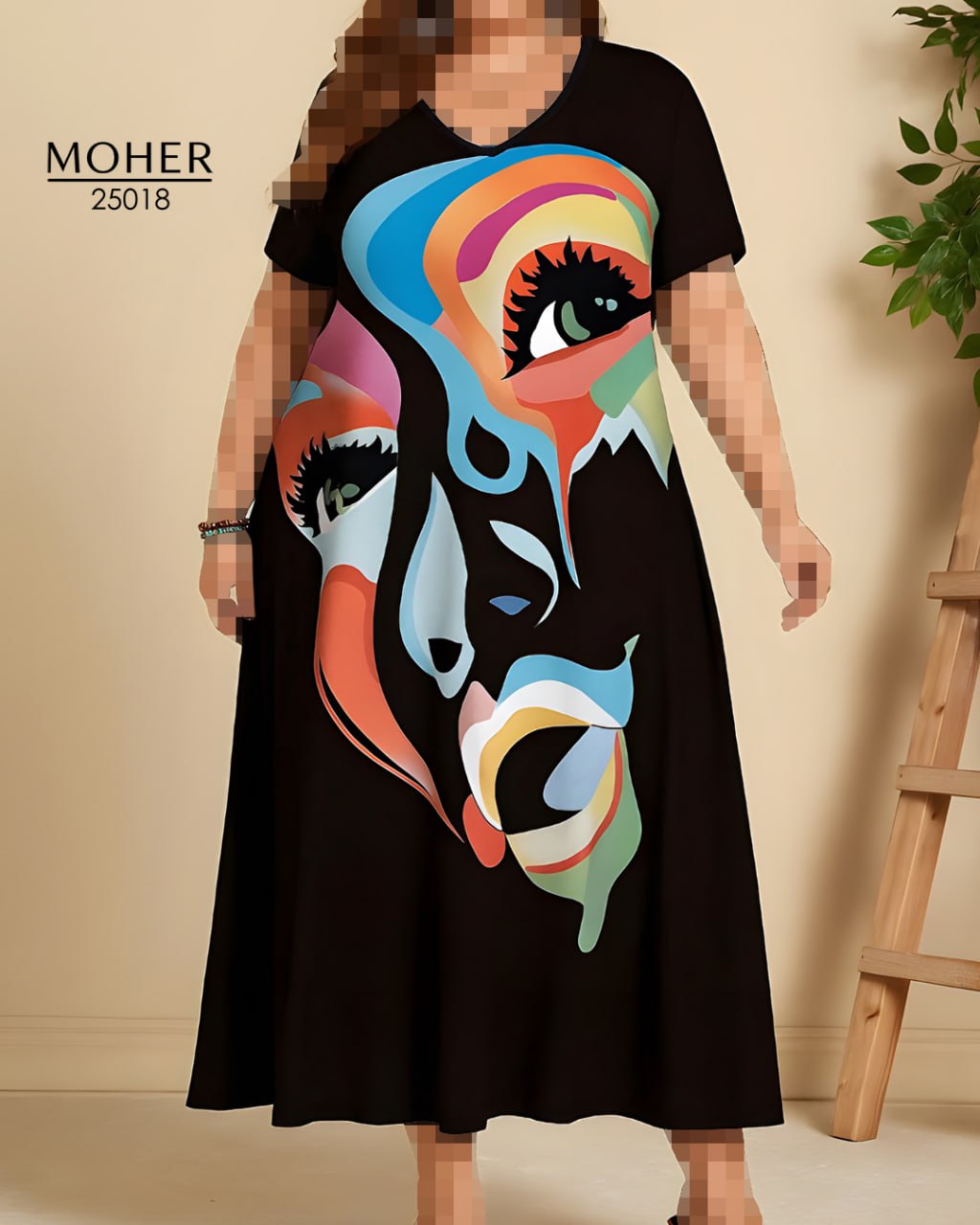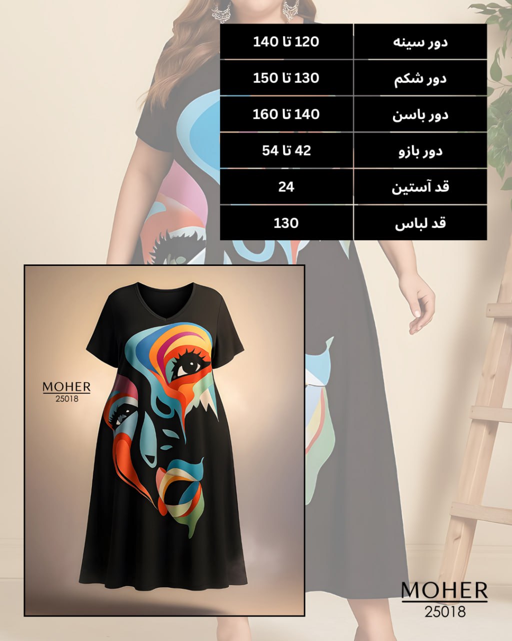 پیراهن ماکسی سایز بزرگ طرح چهره، انتخابی خاص برای خانمهایی که به استایل متفاوت و مدرن علاقه دارن. چاپ هنری و جسورانه صورت انتزاعی روی زمینه مشکی، جلوهای شیک و منحصربهفرد به این لباس داده و استایلتون رو خاصتر از همیشه میکنه.