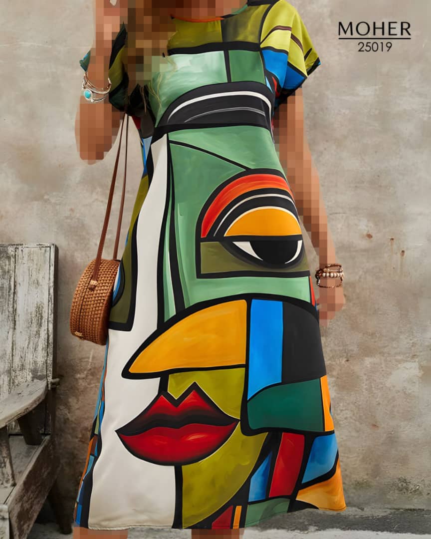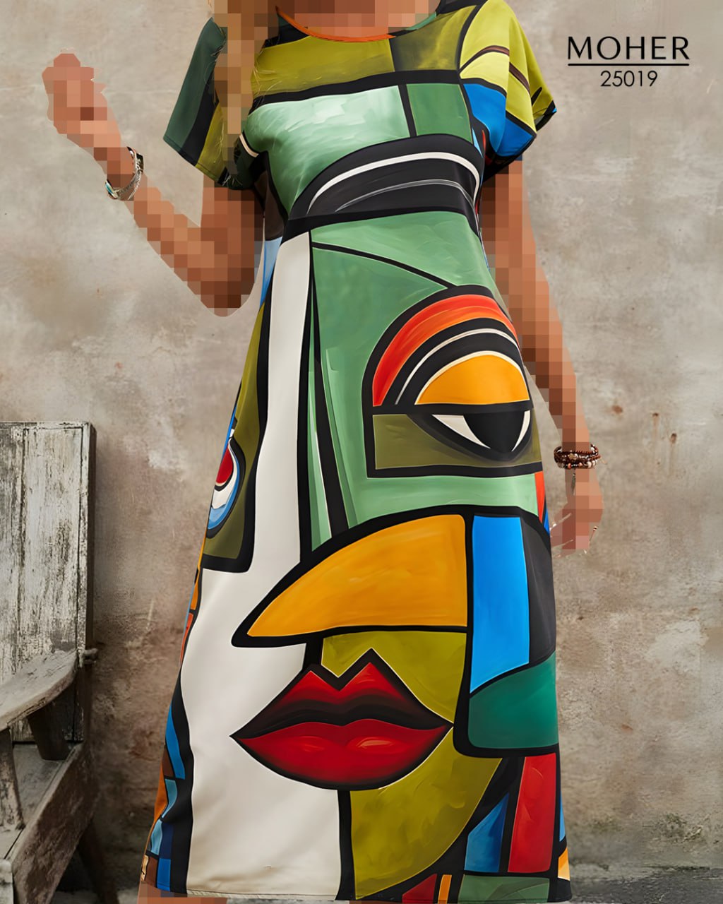 اگر دنبال یه لباس خاص، متفاوت و با حس هنری هستی، این پیراهن بلند سایز بزرگ با طرح چهره به سبک کوبیسم همون چیزیه که دنبالش بودی!