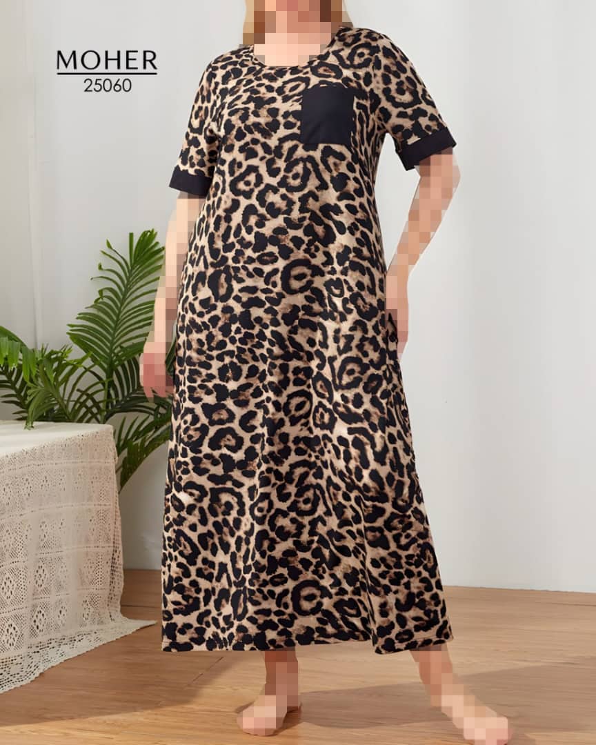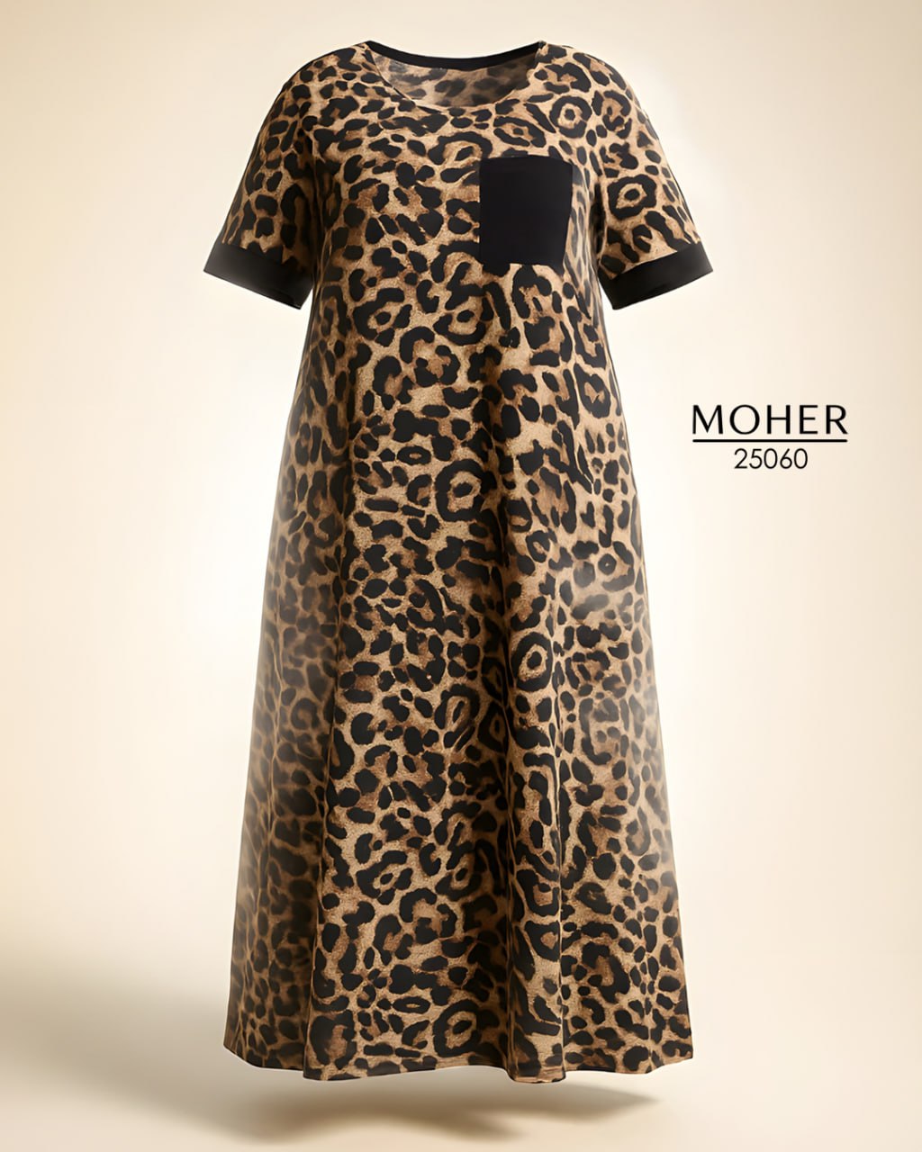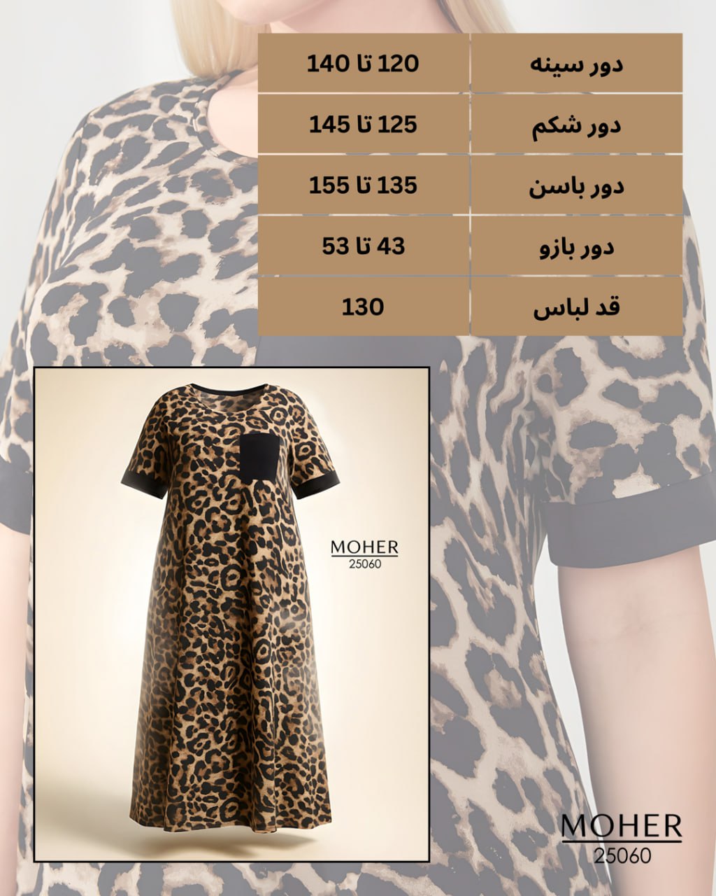 این پیراهن راحتی پلنگی سایز بزرگ با طراحی مدرن و جذاب، از پارچه نرم و کشی لاکرا سافت دوخته شده تا هم راحتی داشته باشه و هم استایلی شیک بهتون بده.