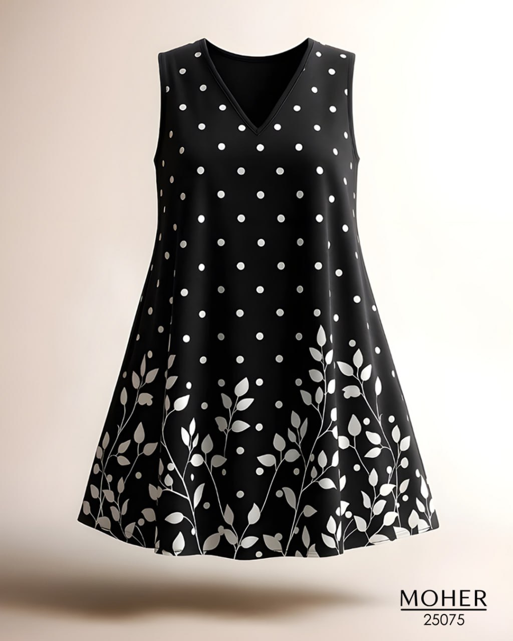 ترکیب رنگ مشکی کلاسیک با خالخالیهای سفید در بالا و طرح برگهای سفید در پایین، یه ظاهر چشمنواز و خاص بهت میده که تو هر مهمونی و دورهمیای میدرخشی!