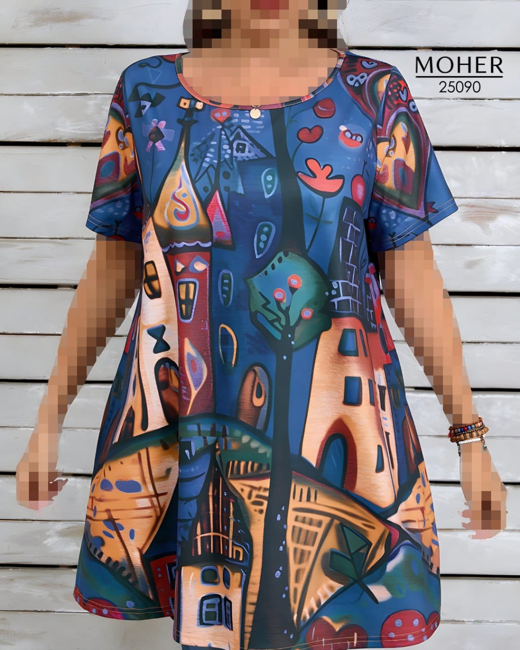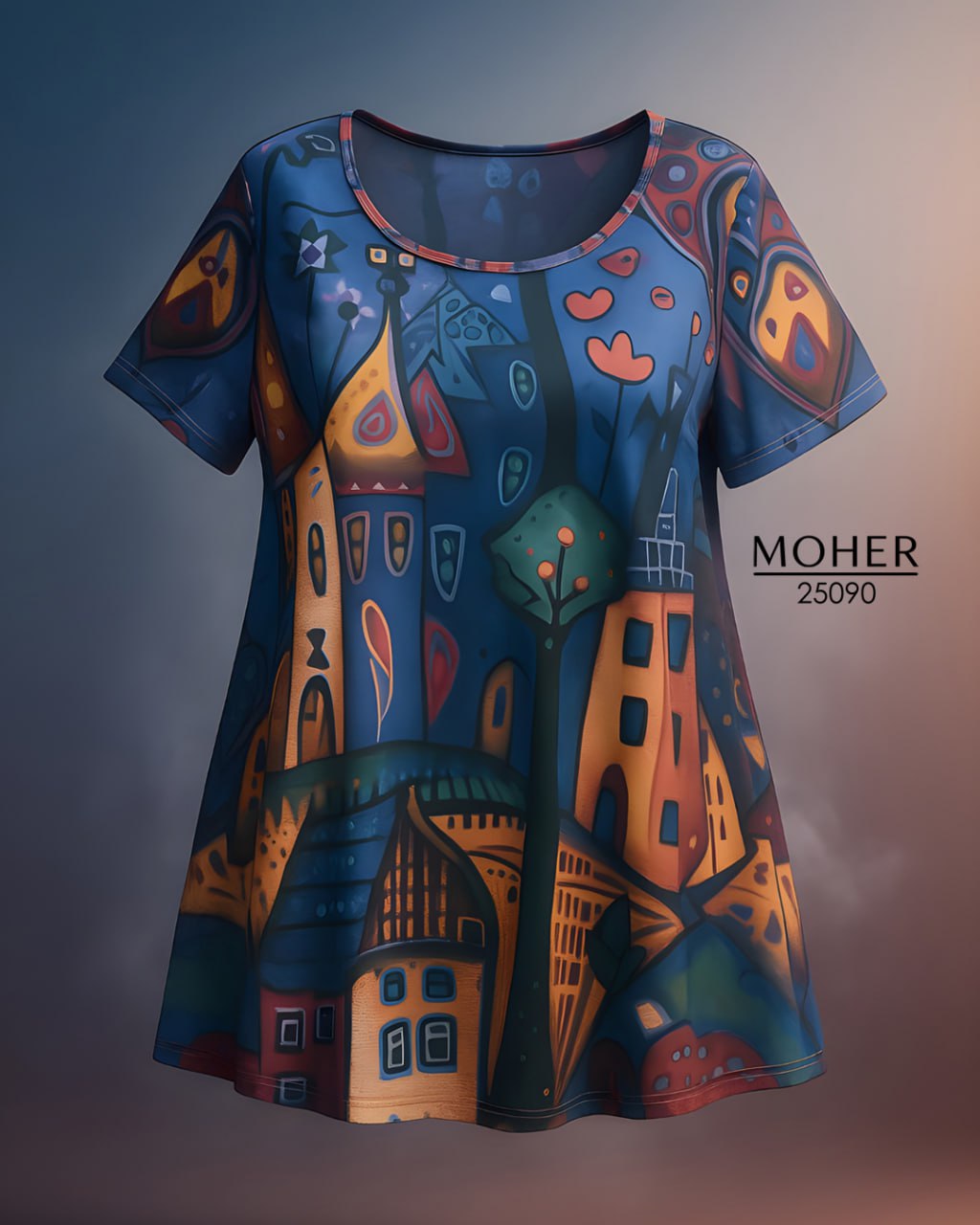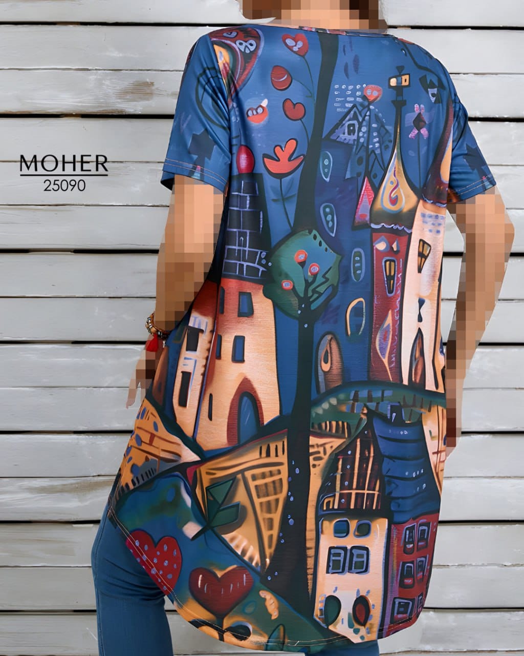 این تونیک سایز بزرگ با طرح خانههای کارتونی، استایل روزمرهتون رو خاص و متفاوت میکنه.