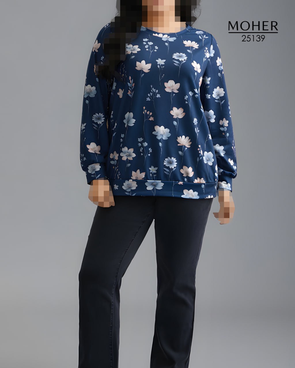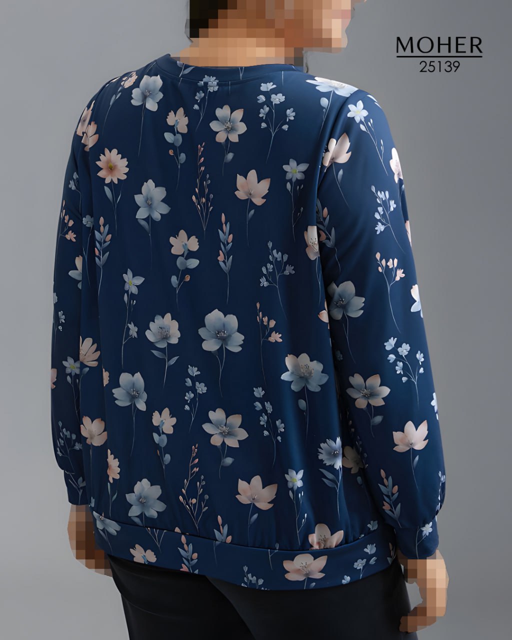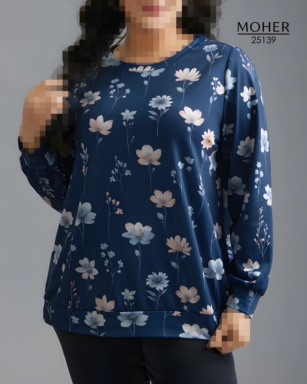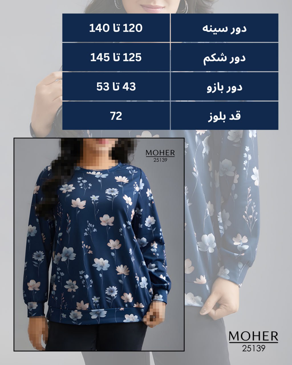 اگر دنبال یه بلوز راحتی با طراحی ظریف و دلنشین هستی، بلوز زنانه سایز بزرگ طرح گلهای آبی بهترین انتخابه.