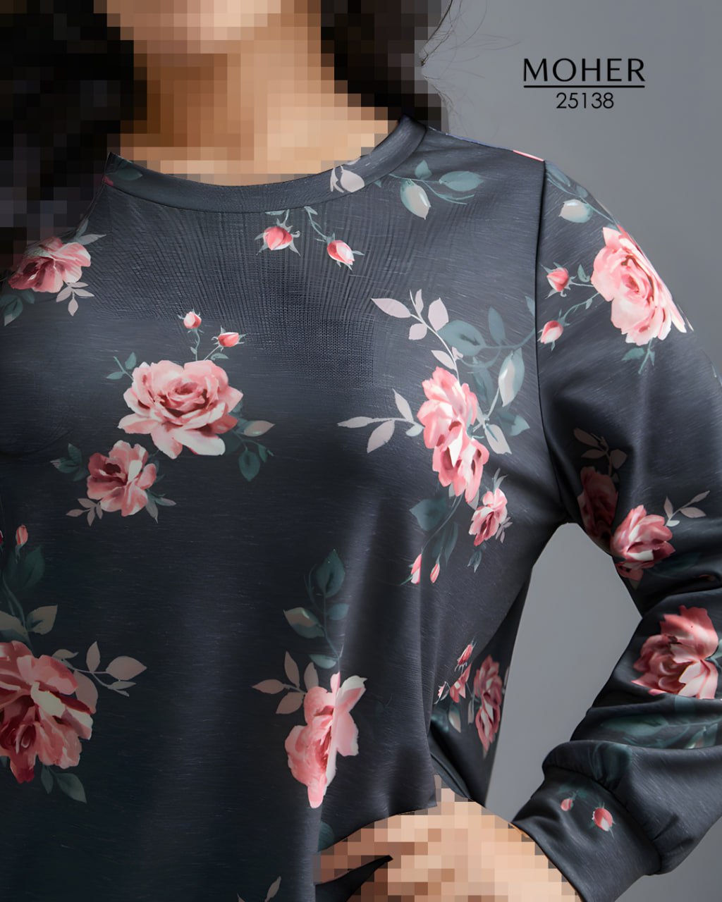 زمینه سورمهای تیره مینیمال، استایلت رو پر از آرامش و لطافت میکنه. هم راحتی داری، هم توی خونه خوشپوش و شیک میمونی.