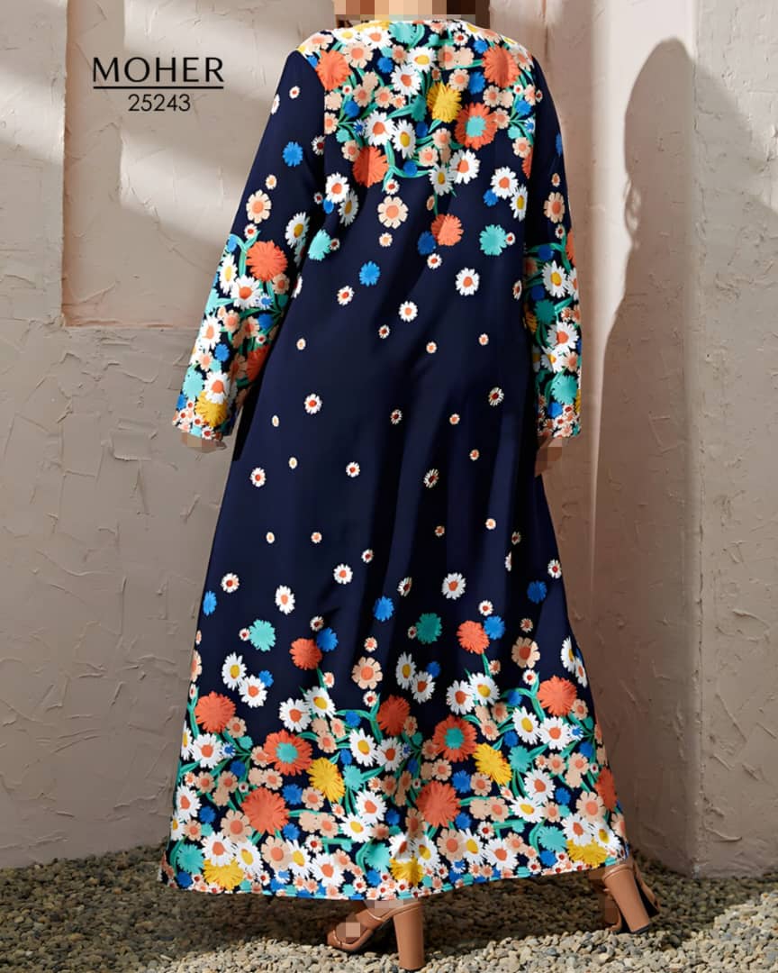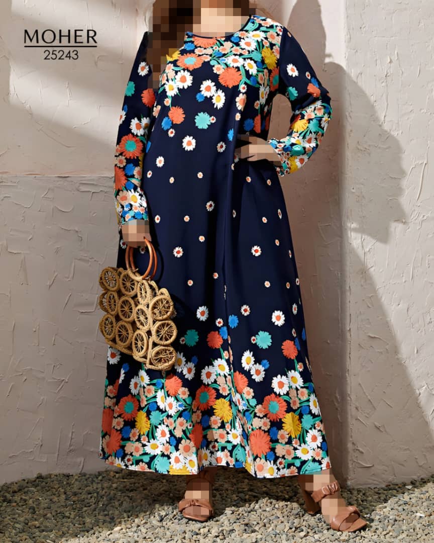این پیراهن ماکسی سایز بزرگ، یه انتخاب شیک و راحت برای خانمهاییـه که عاشق استایلهای زنونه، رنگی و خاصان. طرح گلهای نارنجی، زرد، سبز و سفید روی زمینهی تیره، یه ترکیب دلبر از شادابی و وقار ساخته که حسابی چشمنوازه.