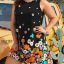 ترکیب گلهای نارنجی، سفید، بنفش و سبز روی زمینه مشکی، استایلی چشمنواز و پرانرژی میسازه که هر جایی بدرخشید.