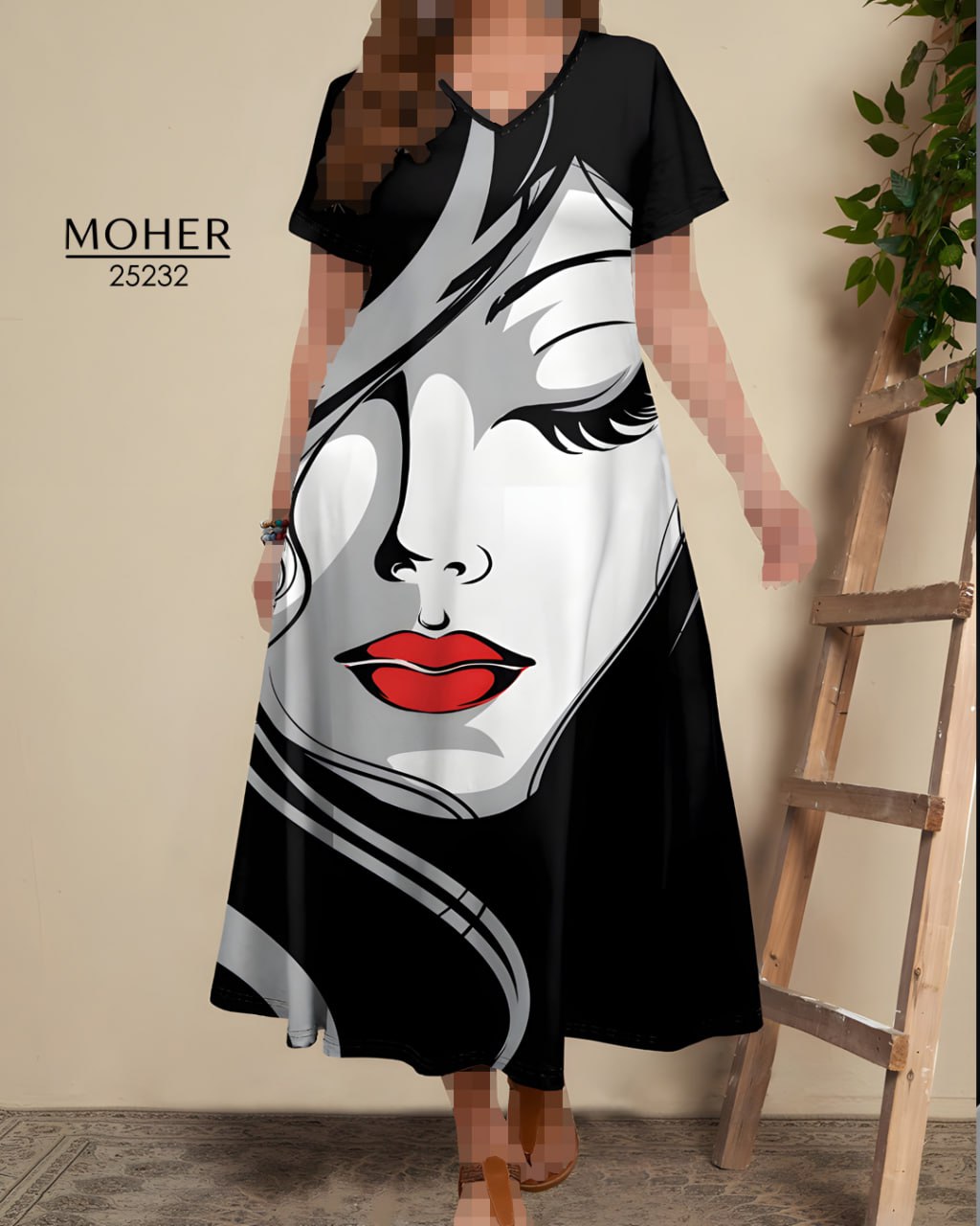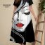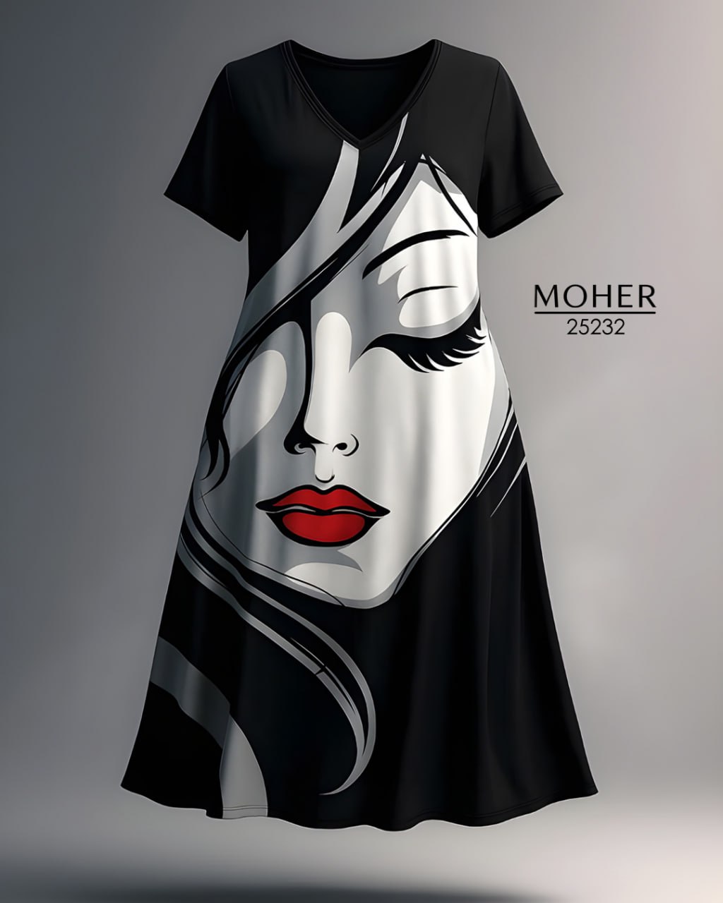 پیراهن زنانه سایز بزرگ طرح چهره با چاپ گرافیکی خاص و ترکیب رنگ مشکی، سفید و قرمز، استایلی مدرن و هنری به شما میبخشه.