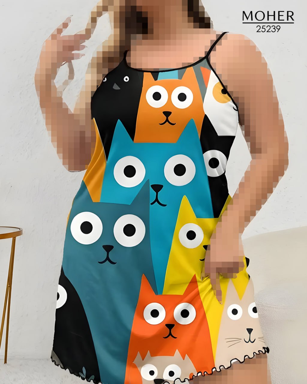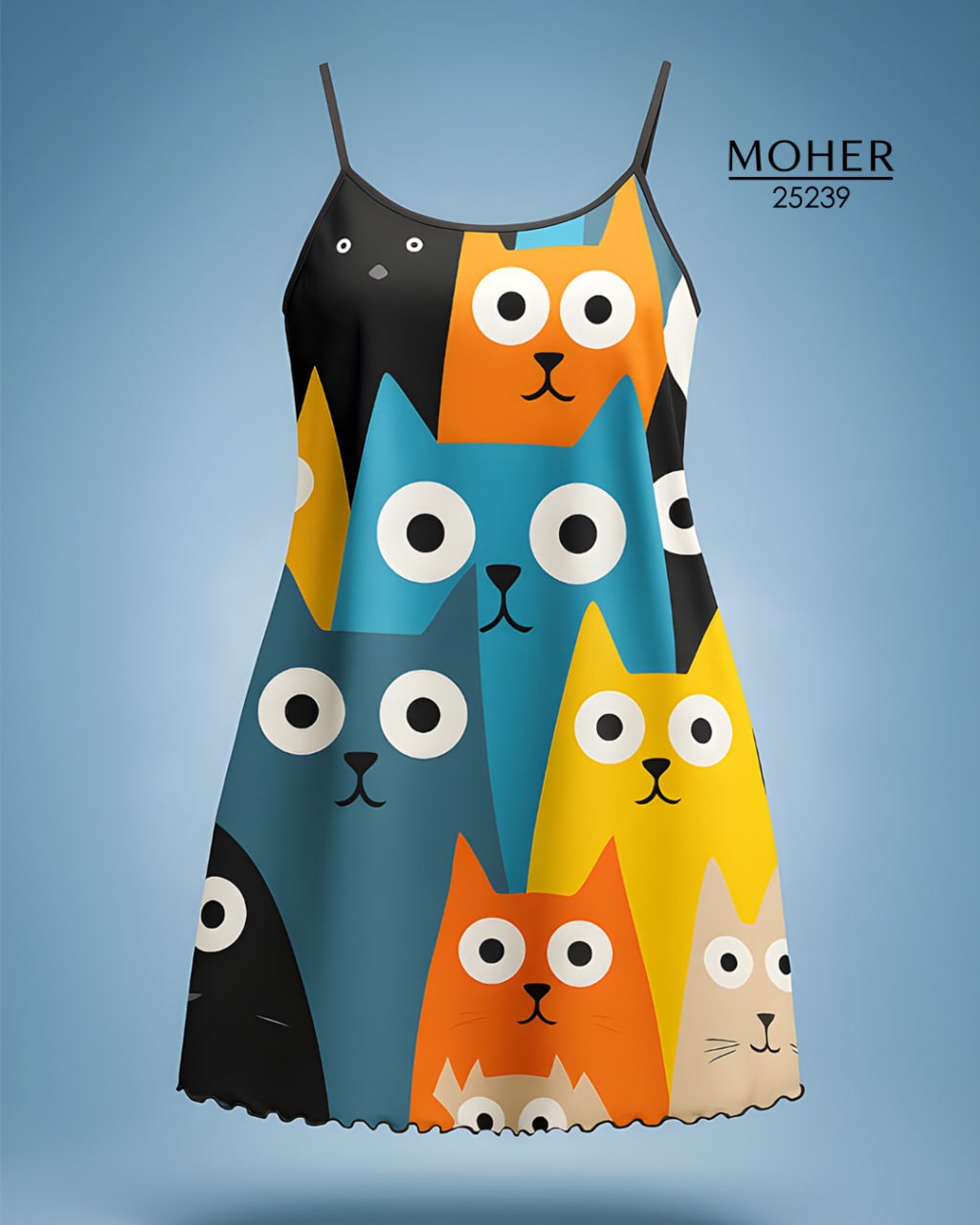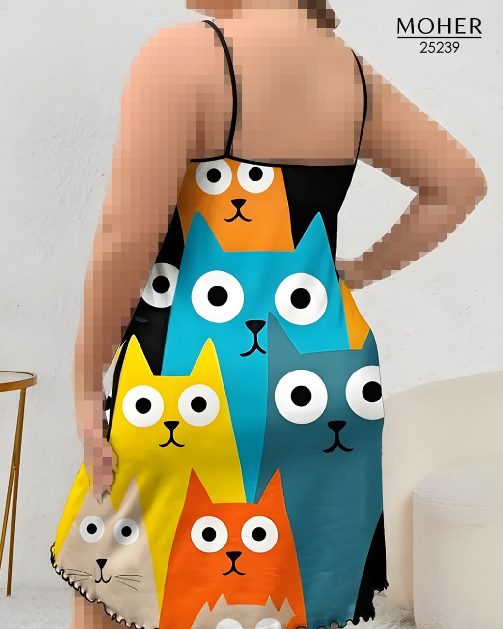 طرح بامزه گربههای رنگی روی زمینه مشکی، استایل شاد و خاصی بهت میده و با یه دمپایی یا صندل ساده راحت ست میشه. یه انتخاب عالی برای استایل خانگی شیک و بانمک.