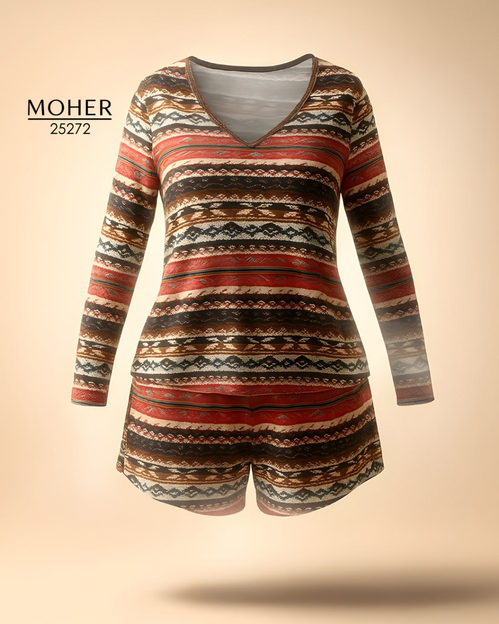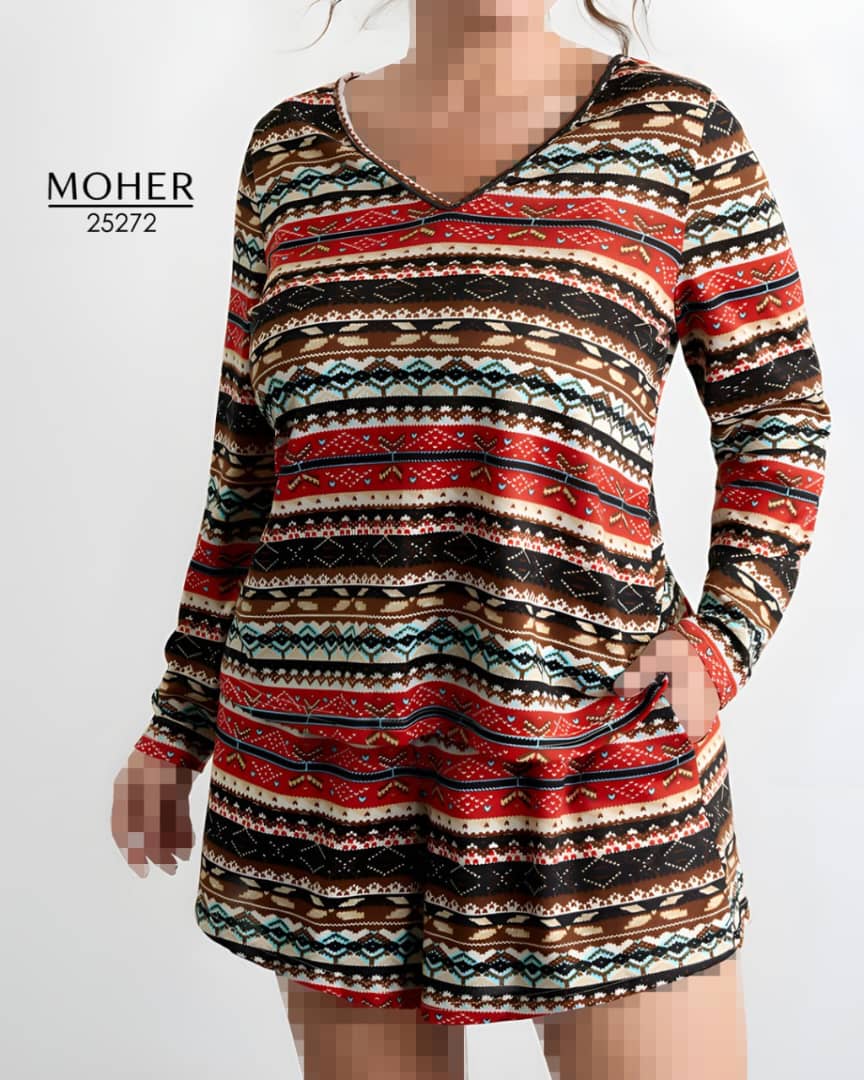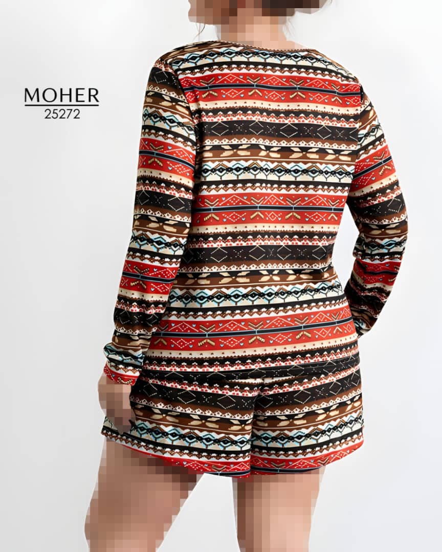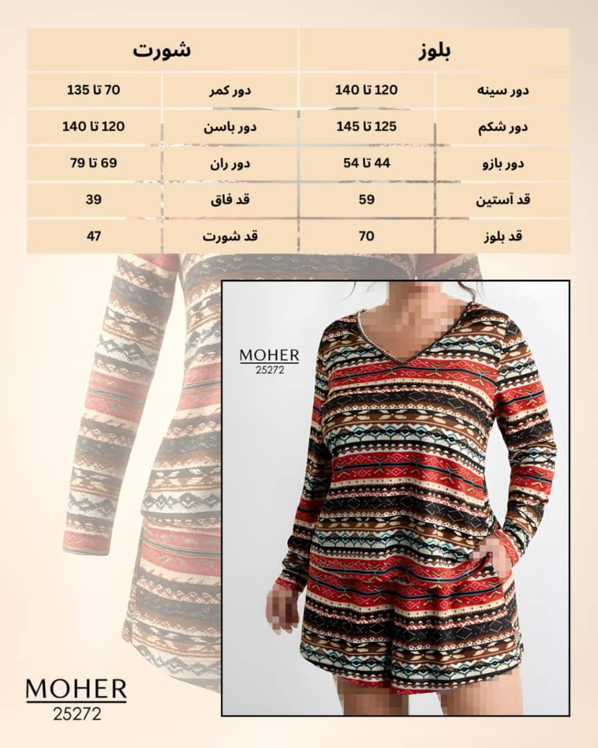 ست بلوز و شورت زنانه سایز بزرگ طرح سرخپوستی، ترکیبی از راحتی، استایل و انرژیه.