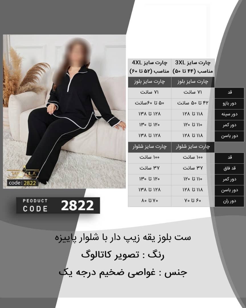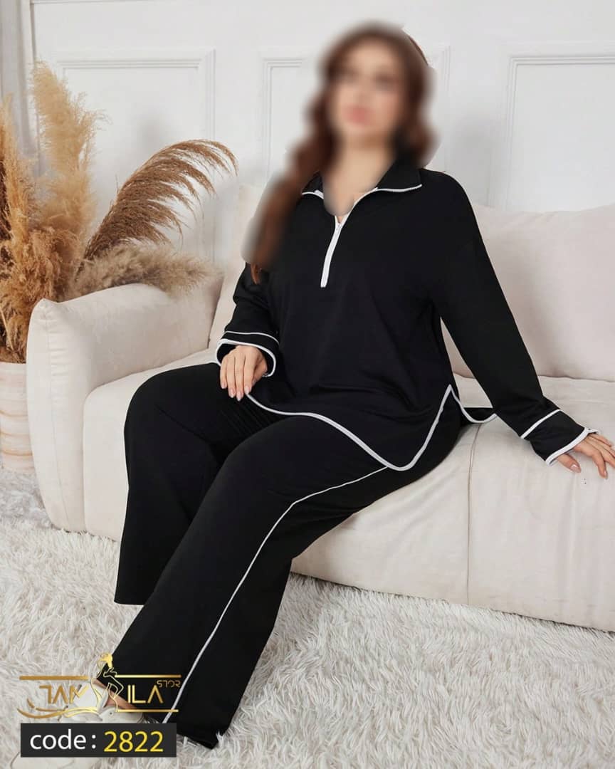 ست بلوز یقه زیپ دار با شلوار پاییزه