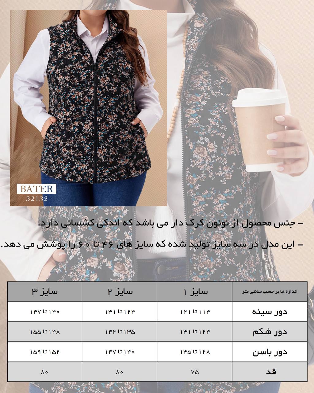 ♦️سایزبندی : این وست در سه سایز تولید شده که مناسب ۴۶ تا ۶۰ می باشد
