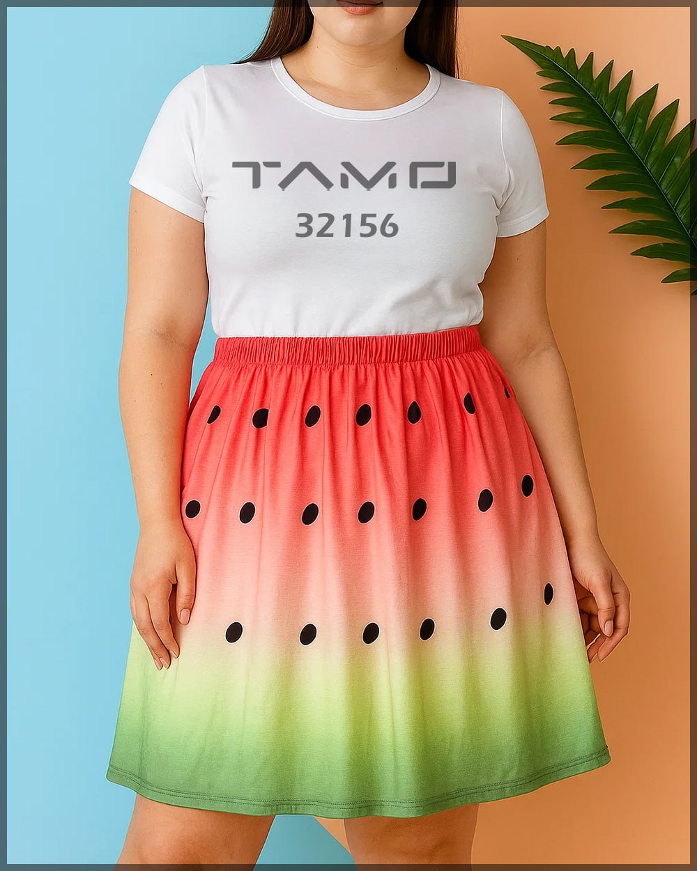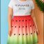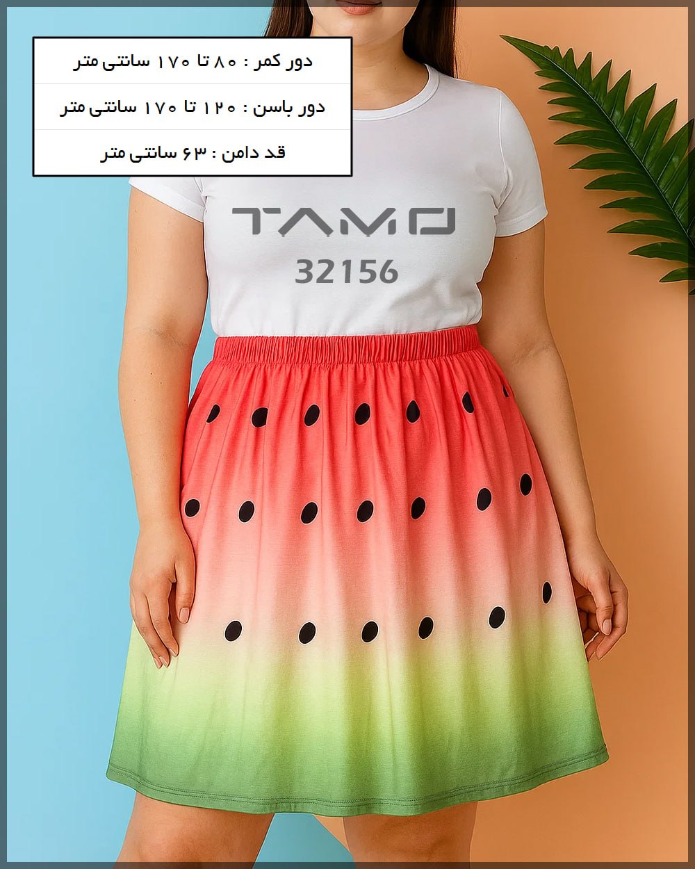 🔹 دامن هندونه ای تم شب یلدا که از پارچه نرمی تولید شده و کشسانی خوبی داره.