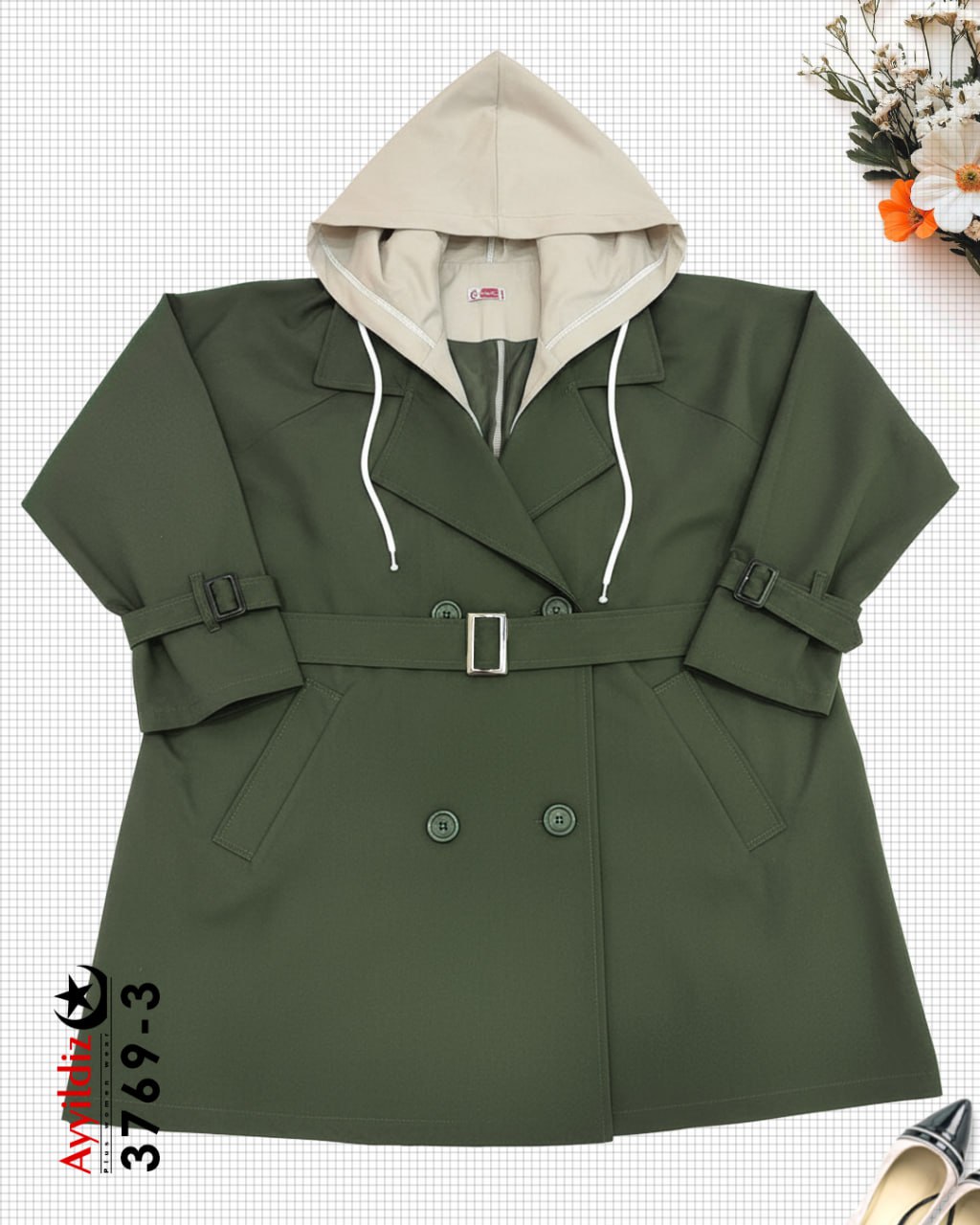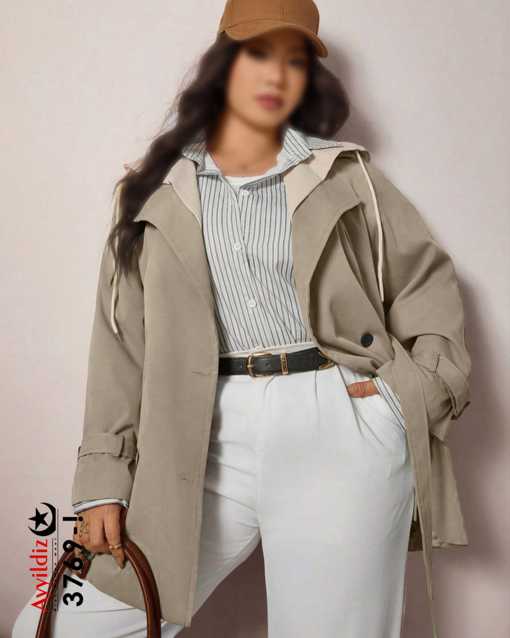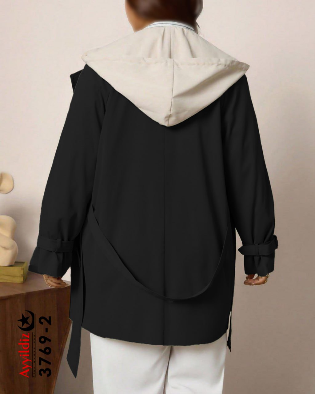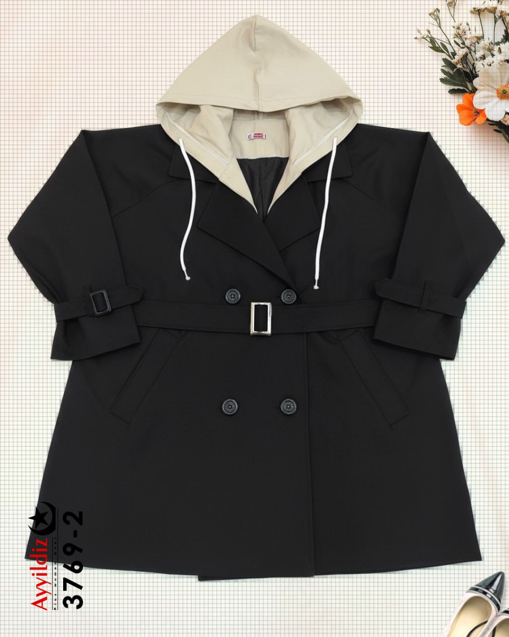 ✅ بارانی کوتاه کلاهدار ترکیبی بیگ سایز بزرگ