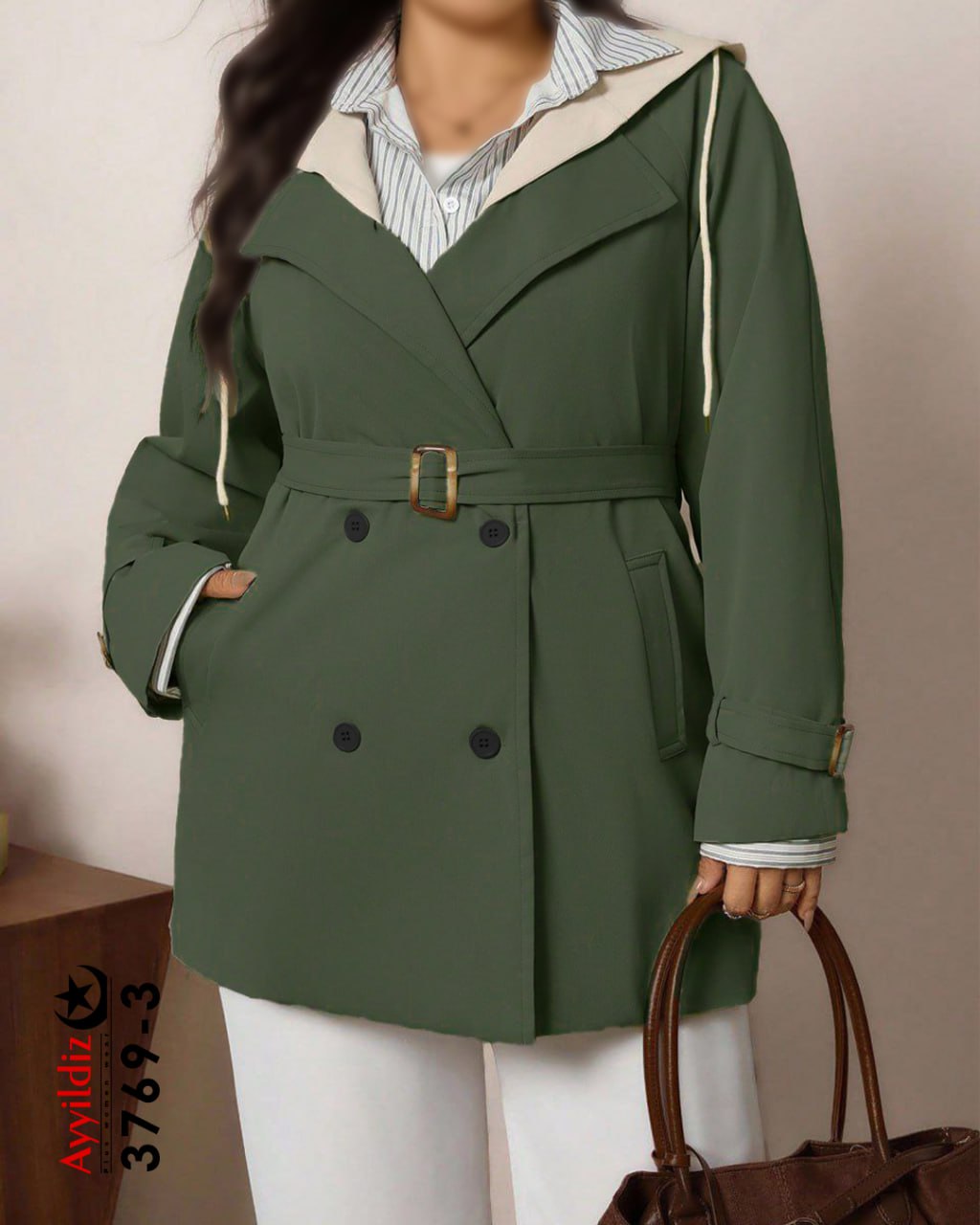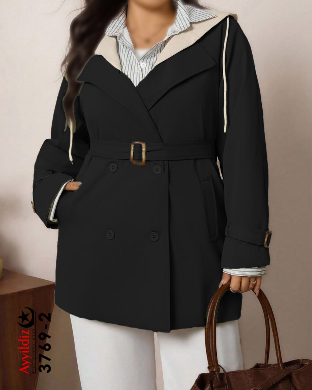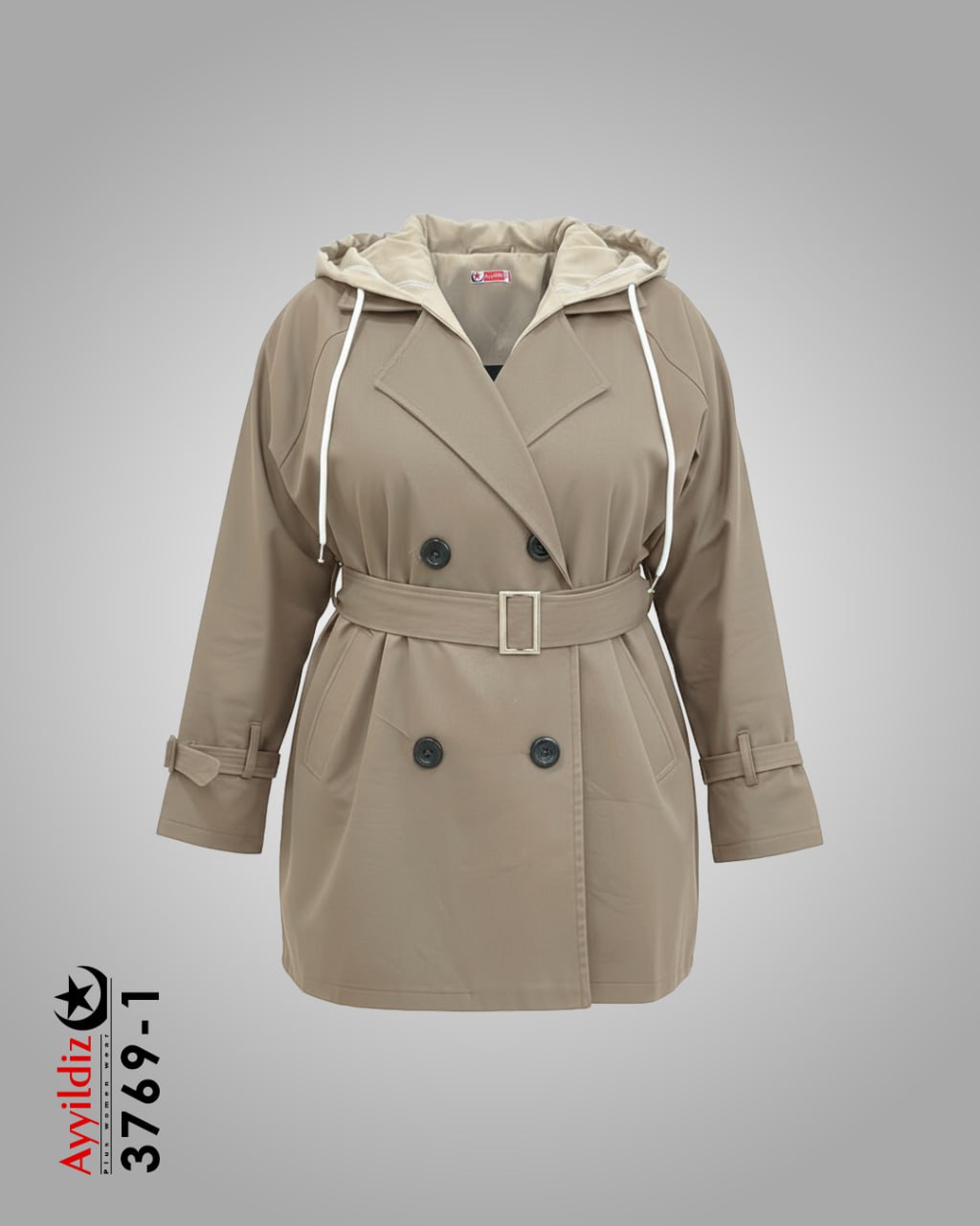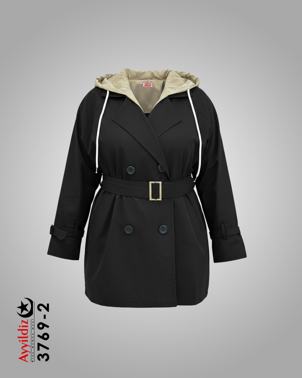 ✅ بارانی کوتاه کلاهدار ترکیبی بیگ سایز بزرگ