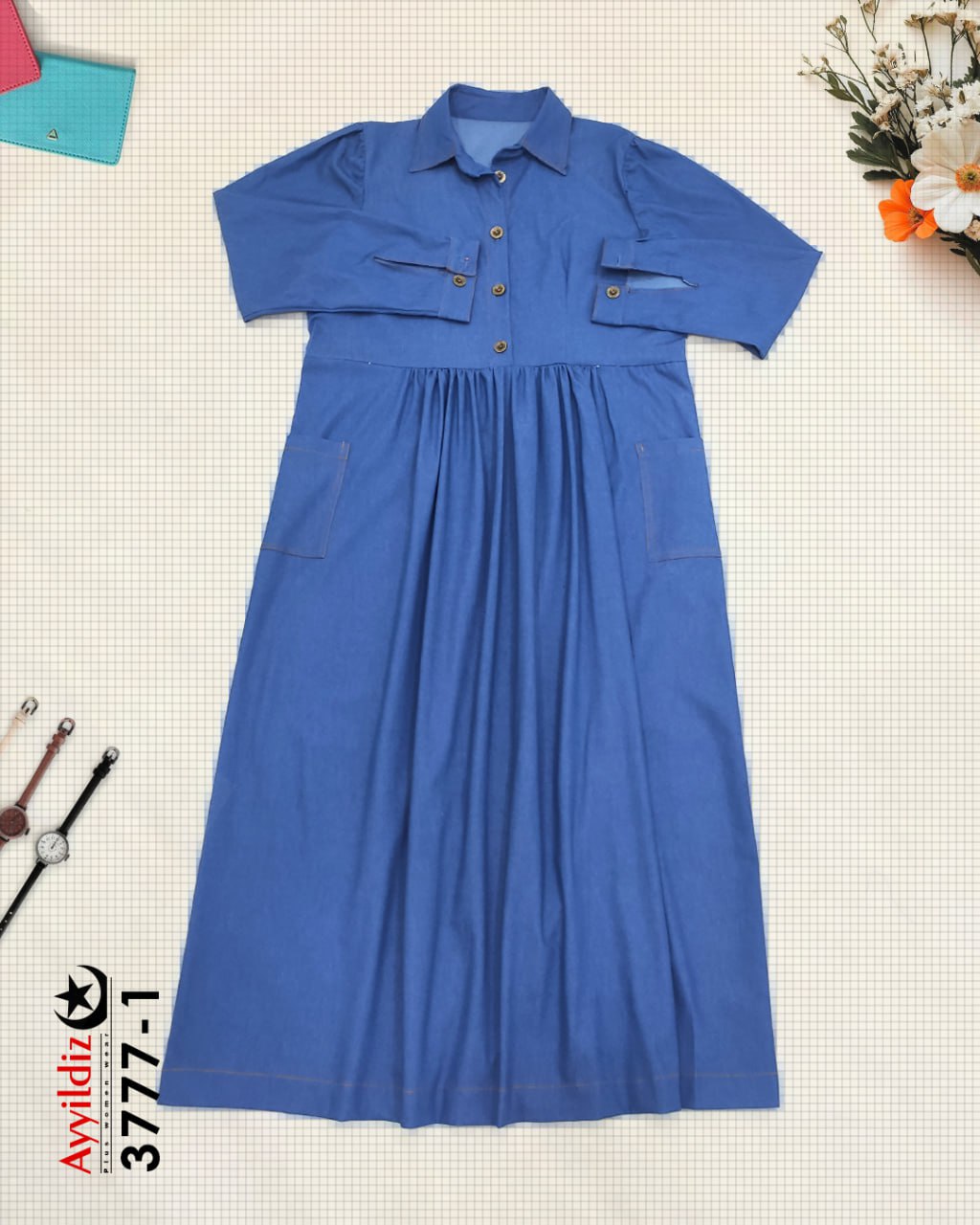 ✅پیراهن بلند جلو دکمه بیگ سایز