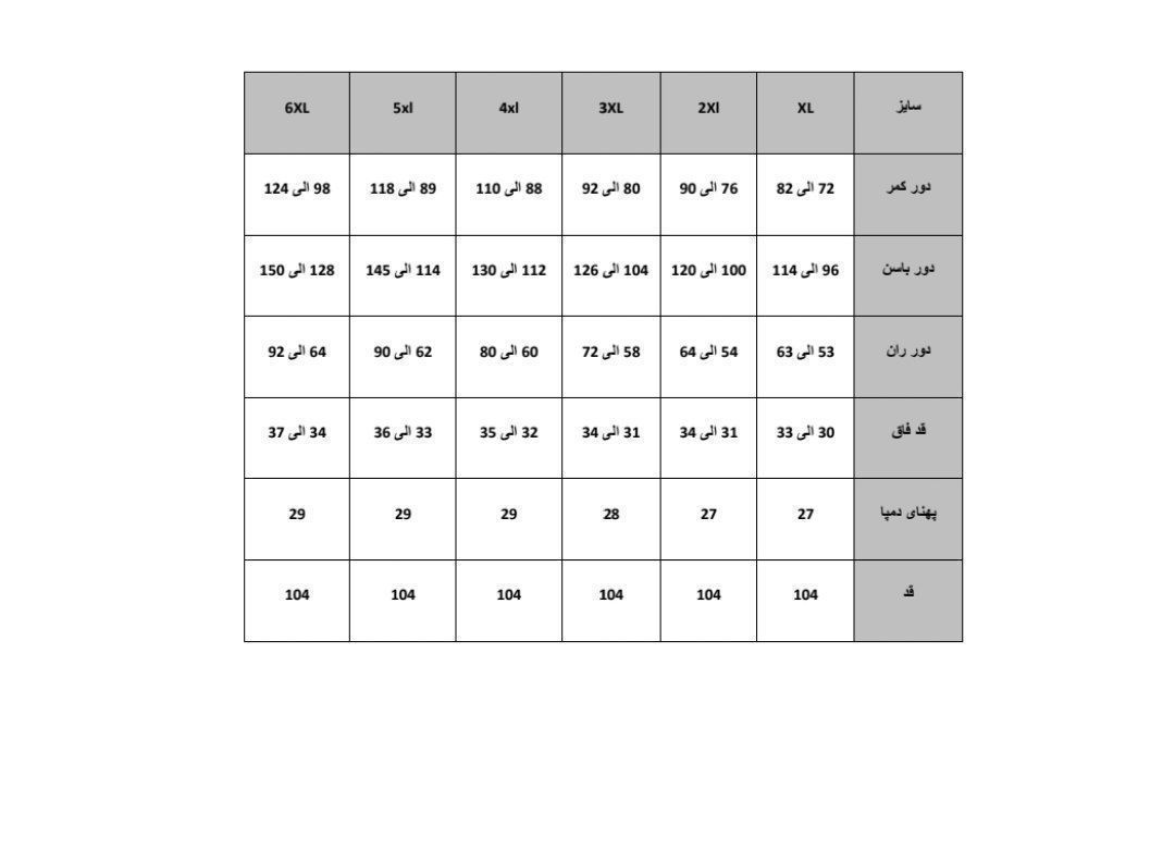 ❌توضیح: باتوجه به چارت سایزی ، عدد اول در چارت حالت عادی شلوار هست و عدد دومی یعنی تا اینقدر کشسانی دارد❌
