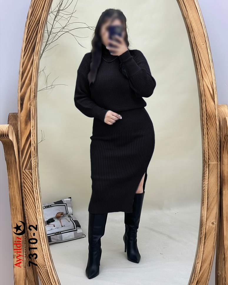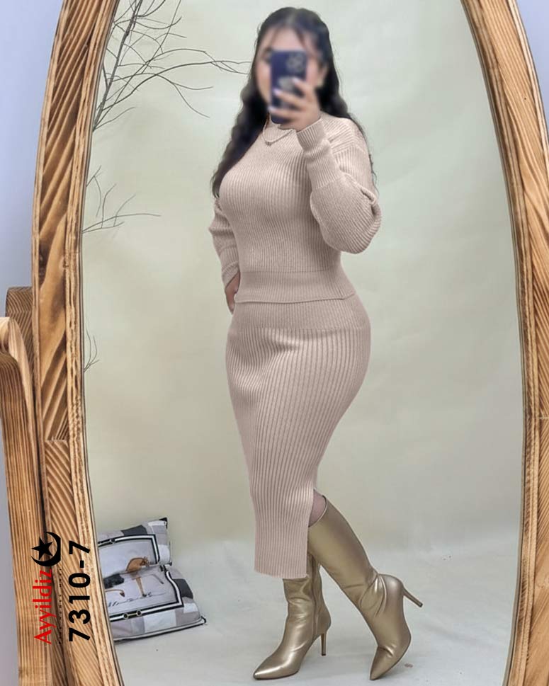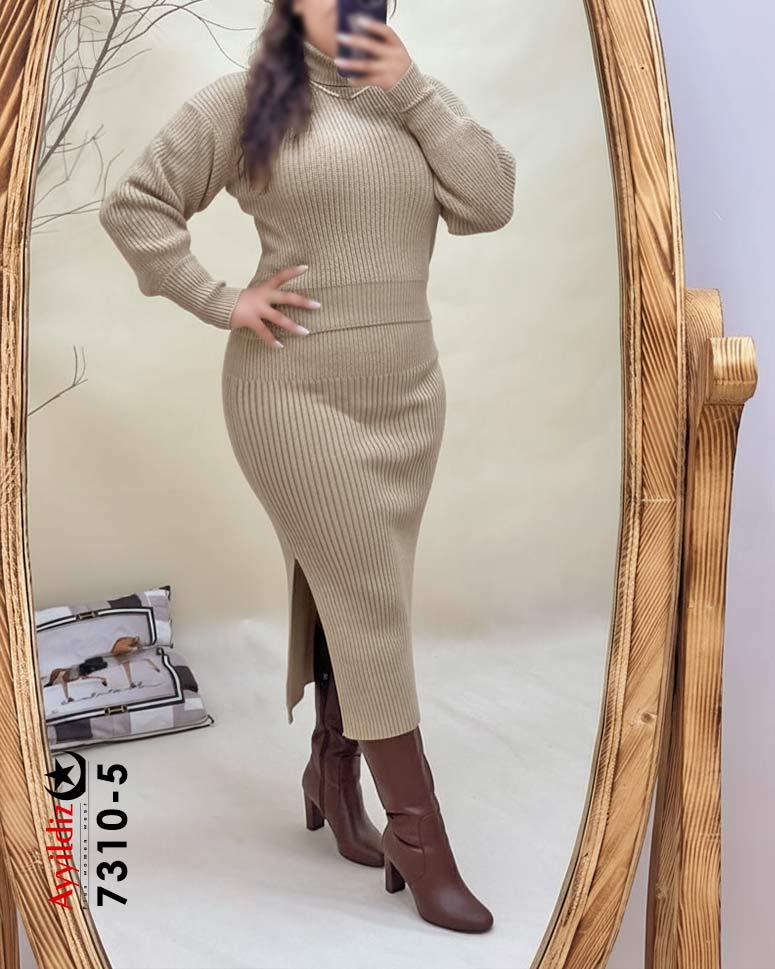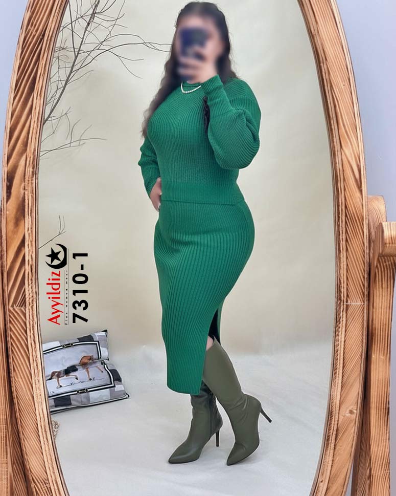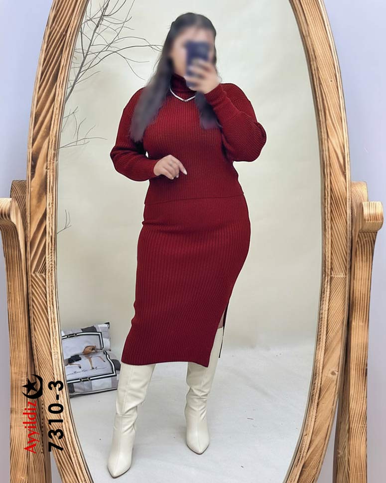 ✅ست بلوز دامن بافت پاییزه سایز بزرگ آییلدیز