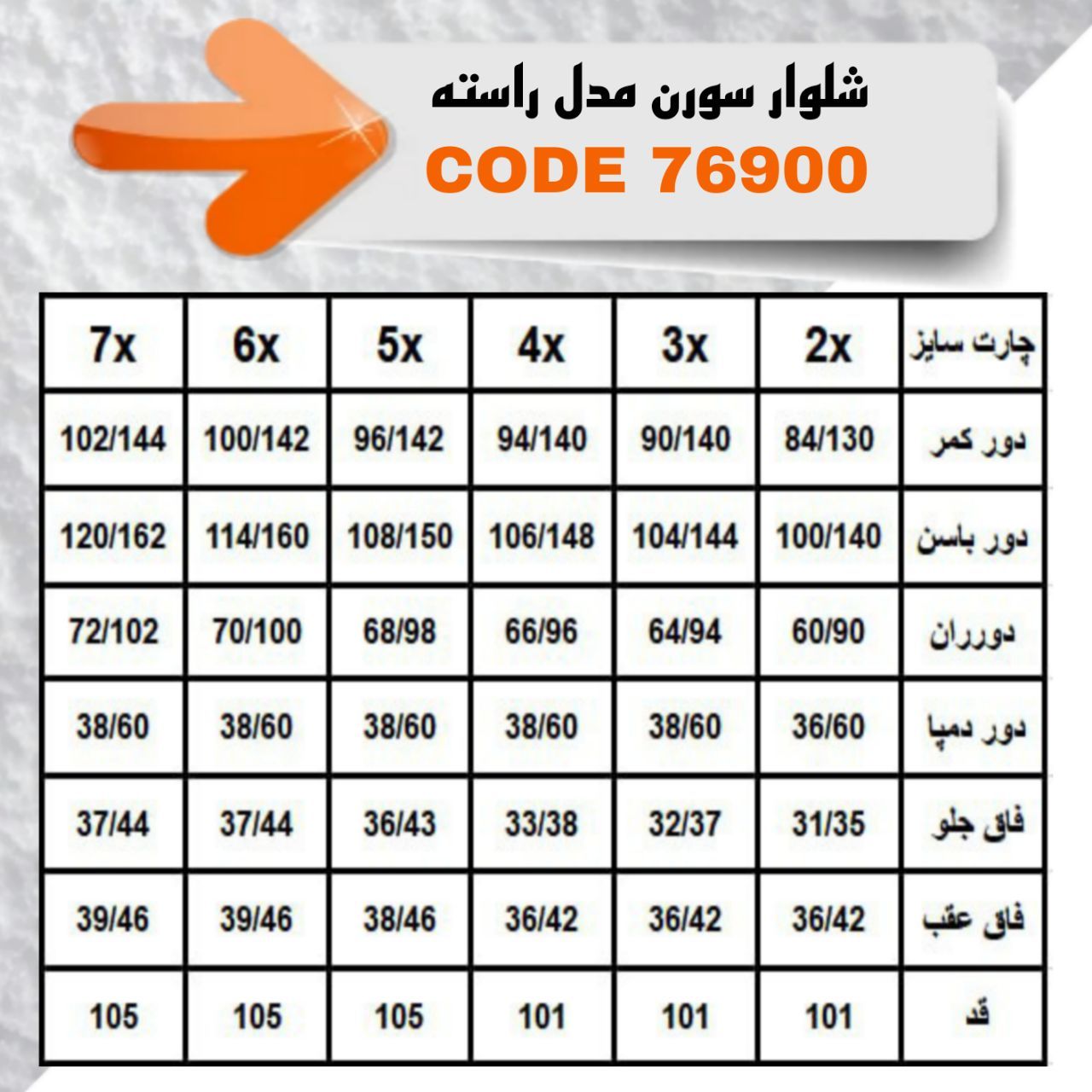 🛑توجه🛑اعداد اول در این چارت حالت عادی شلوار و عدد دوم نهایت کشسانی هست.