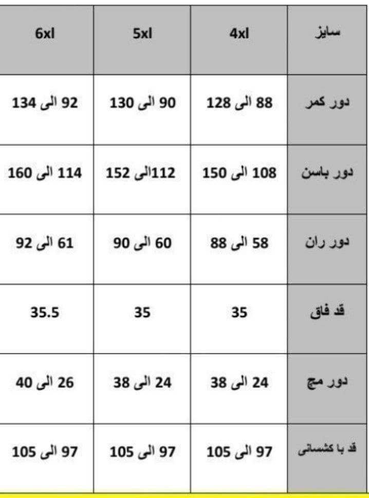 سایز ۶ مناسب ۶۰ تا ۶۶
