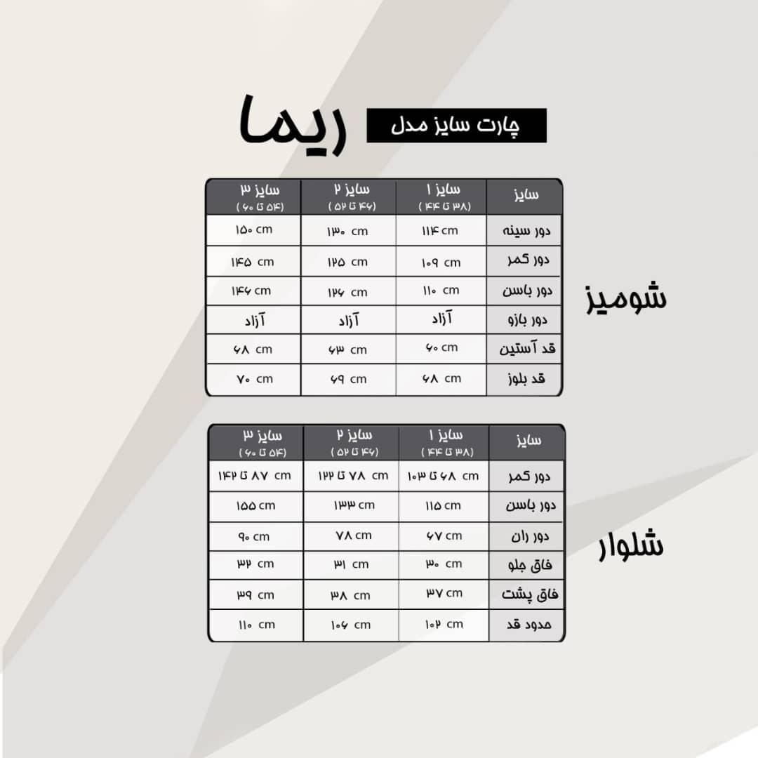 حدود قد : شلوار 102 الی 110 شومیز 68 الی 70