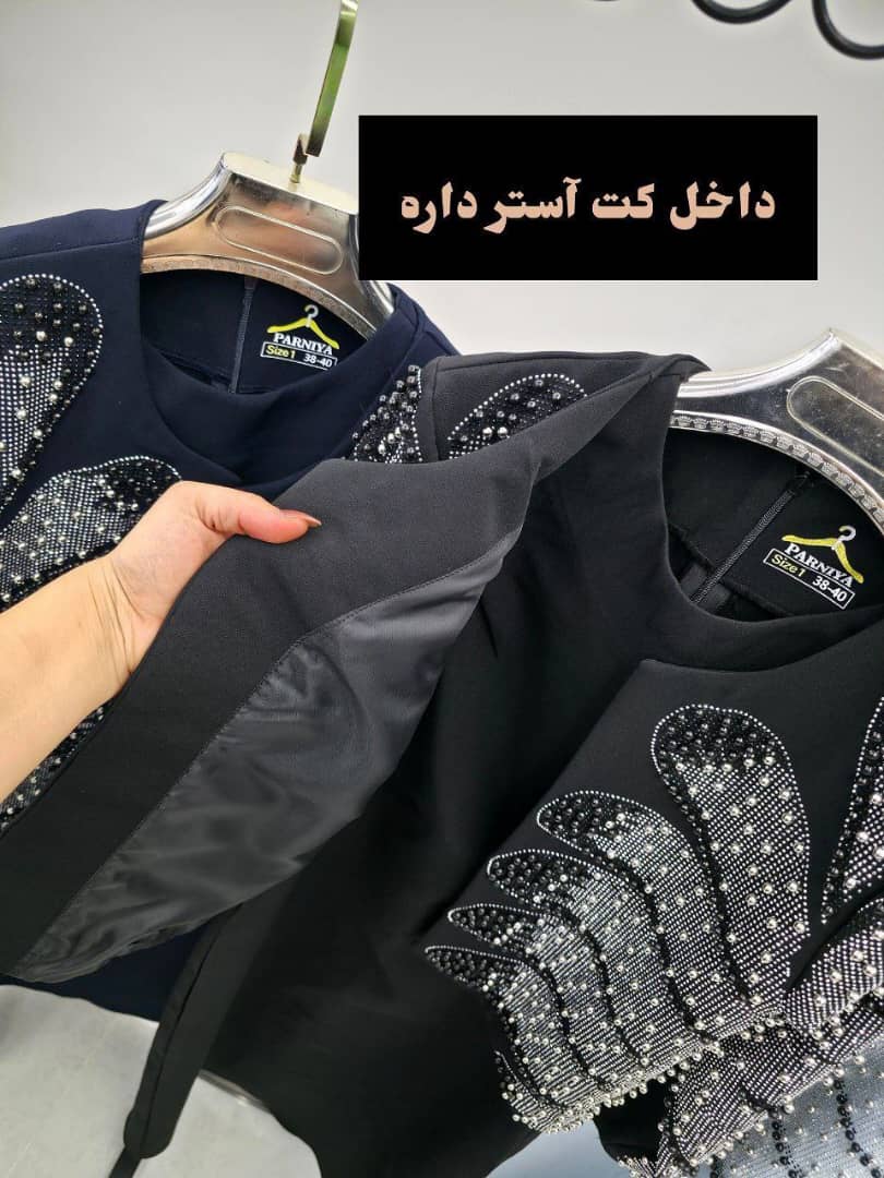 توضیحات : پشت سارافون زیپ مخفی دارد . داخل کت آسترکشی شده