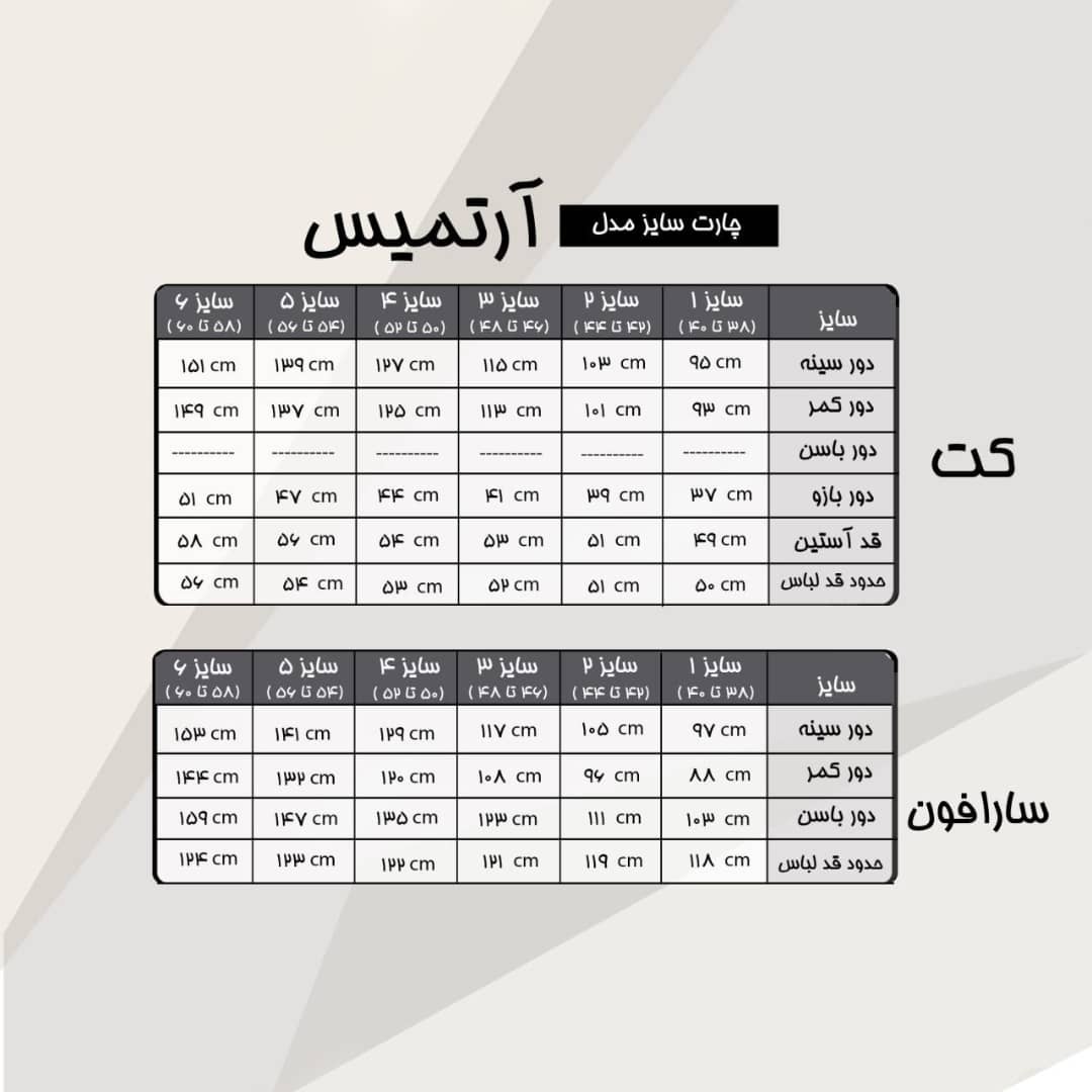 قد سارافون : 118 الی 124 قد کت : 50 الی 56